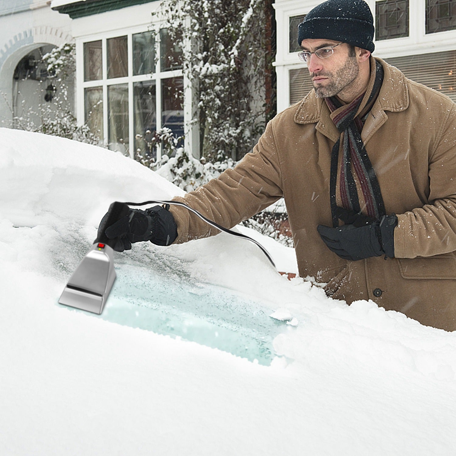 - AN ICE SCRAPER’S PURPOSE:Our upgraded electric heated scraper is specially designed to help you remove ice and snow on car body timely,quickly and easily to ensure a safe and pleasure driving in winter.