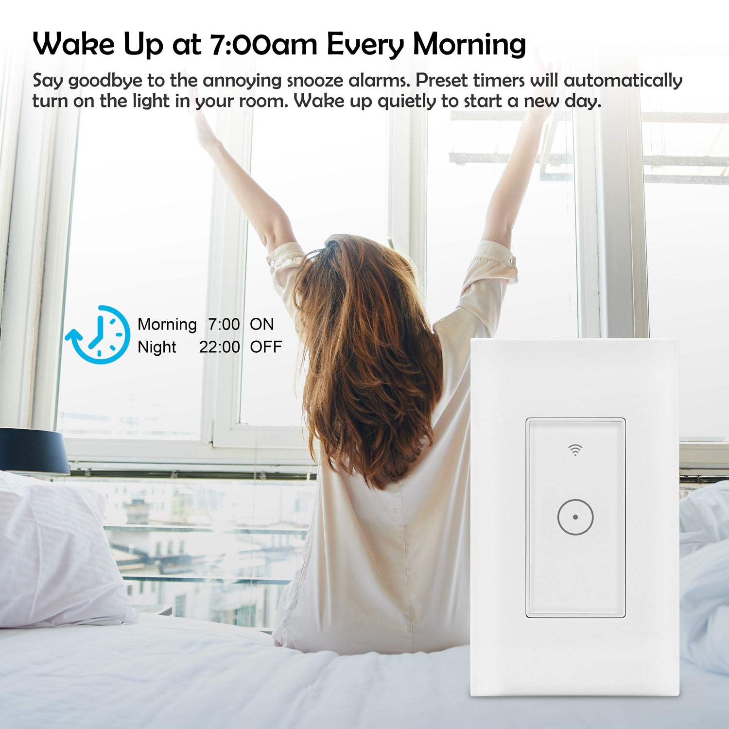 - New Style and Traditional Combination: Not only support controlled by smart App, but also support traditional button control (Equipped Touch Button), providing you more choices. No need worry when it has no WiFi in your home, the manual Touch Button also can control your lamp. In dark environment, the LED Indicator of the smart switch will show its position and guide you the way.