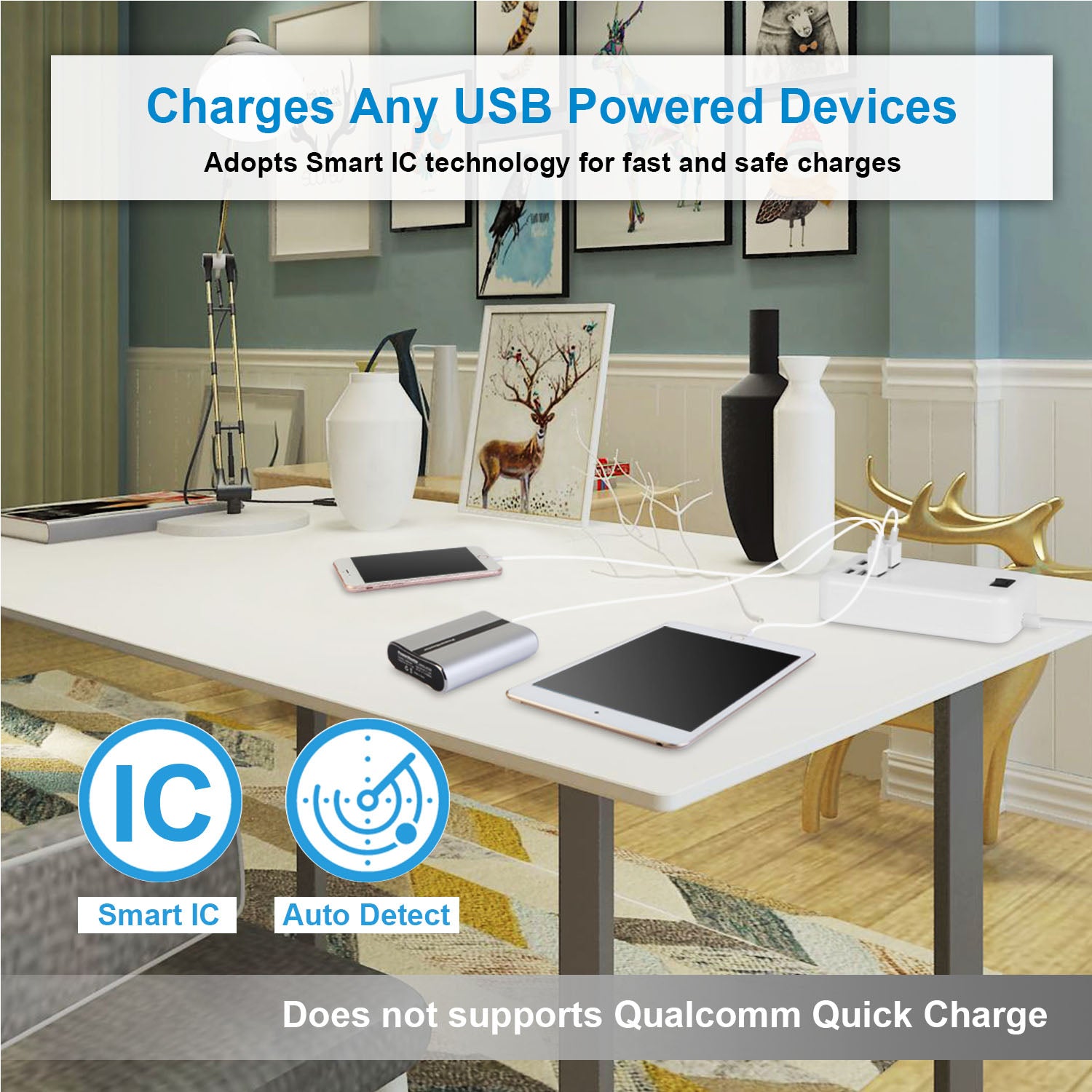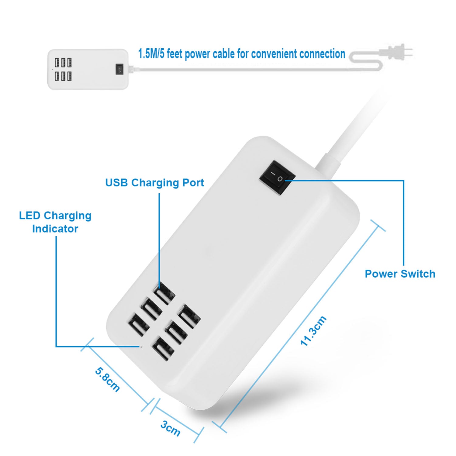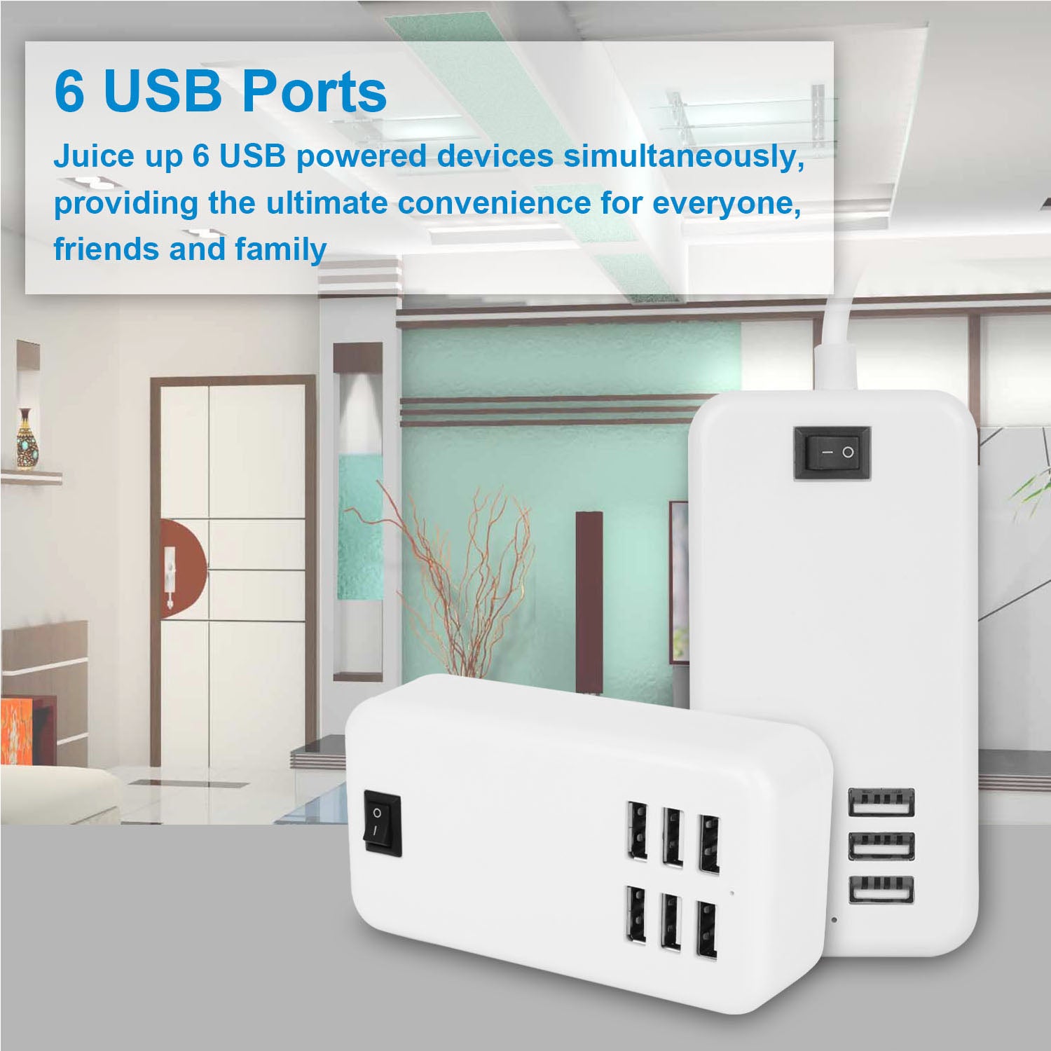 - Juice up 6 power hungry devices simultaneously:Featuring 6 USB port,this wall charger allows you charge 6 universal USB powered devices at once like smartphone,tablet,MP3/MP4 player,iPod/iPad,GPS,camera,game console,headphones,power bank and etc.