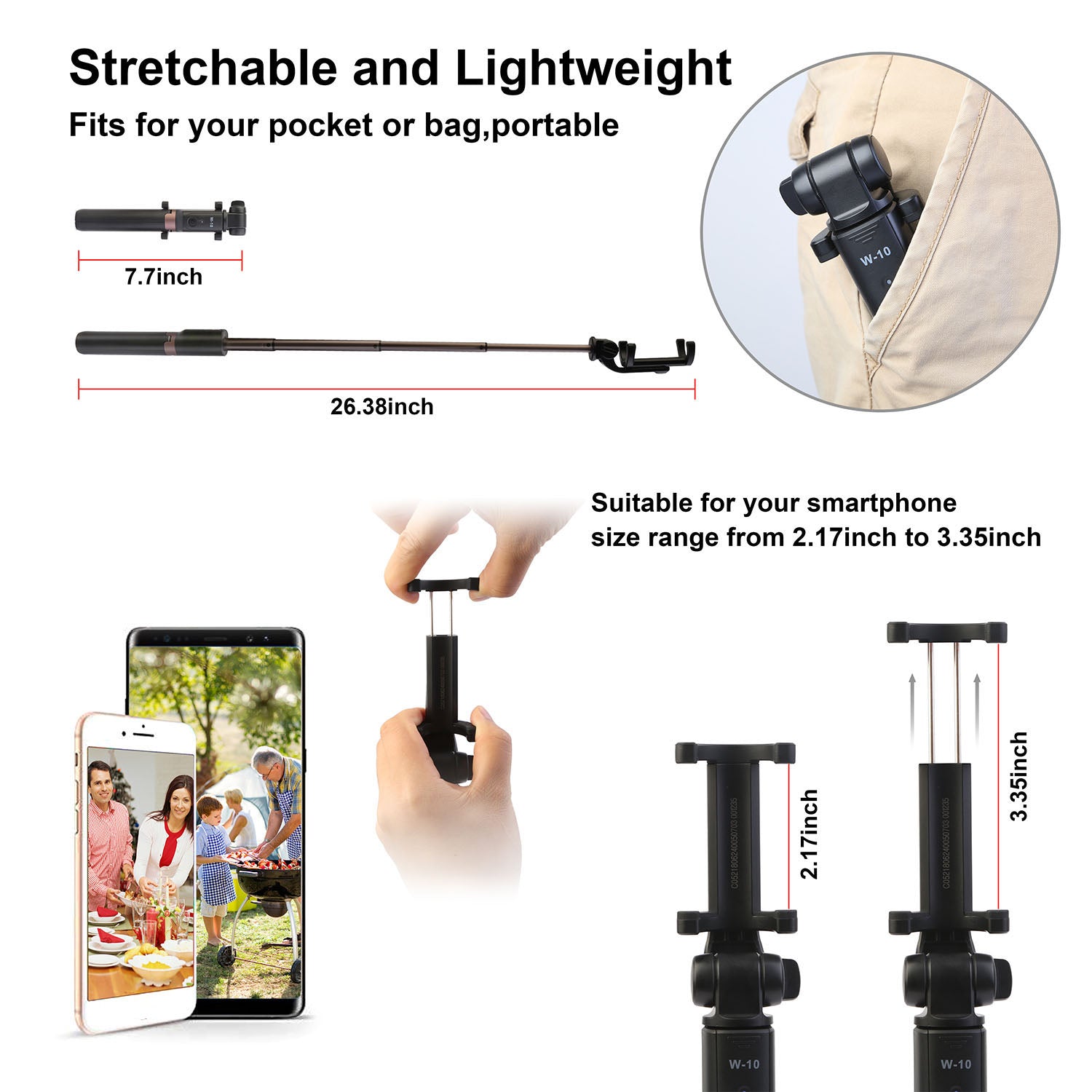 - Compact and Lightweight:The selfie stick can be compacted to 7.7inches,but extended reaches up to 26inches. The stretchable and lightweight(5.61oz) stick is easy to carry for travel or going out.