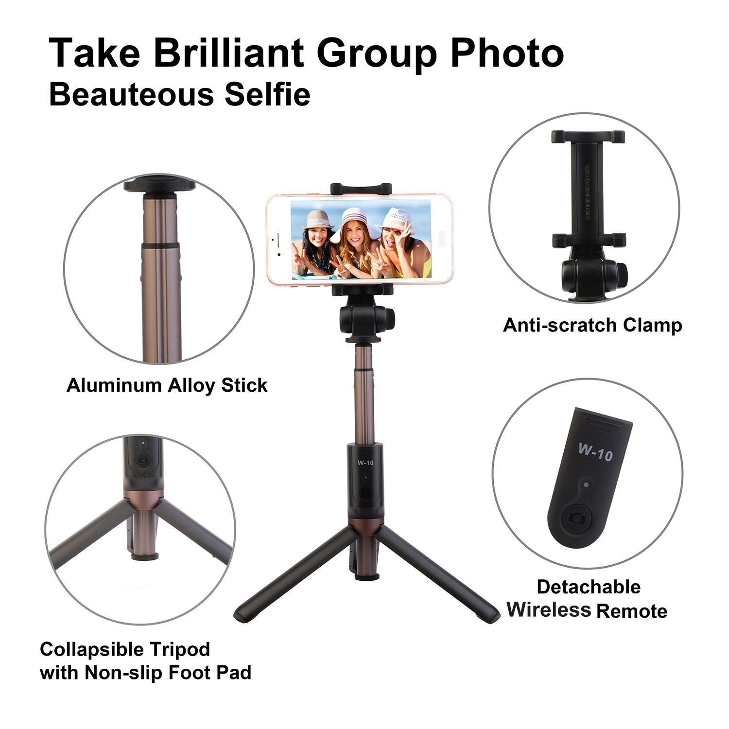 - Extendable Stick and Tripod:Stretchable aluminum alloy stick can extend up to 15.75inch for close shot or long-distance shot depending on your different needs. And,its collapsible tripod with non-slip foot pad frees your hands for face time or video recording avoiding shaking.