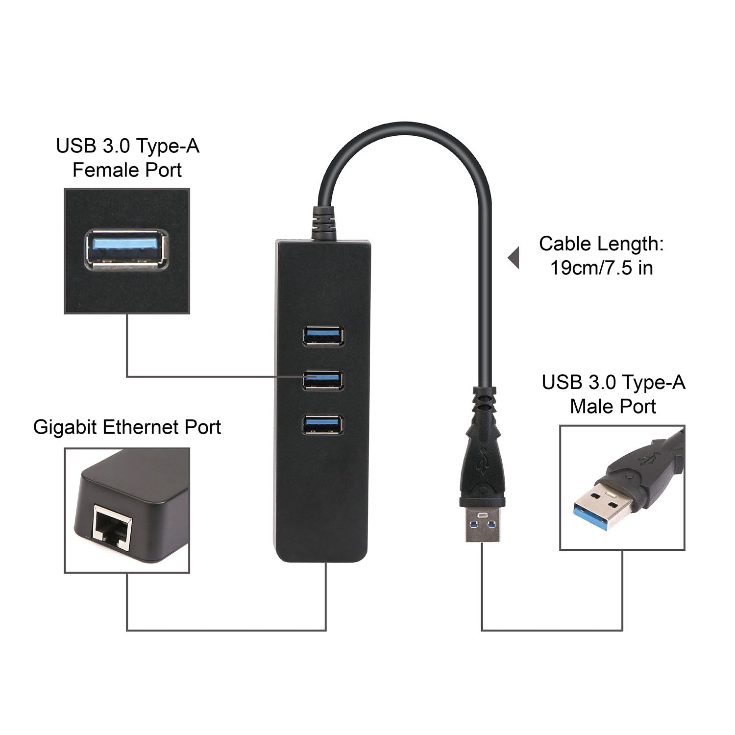 - Wired Network Adapter USB Hub:Expand your laptop or desktop with 3-port USB 3.0 hub and a RJ45 gigabit ethernet port,especially a flexible solution for Macbook Air/Mac/iMac Pro/Surface laptop/ultrabook/notebook and computer featuring USB A interface.