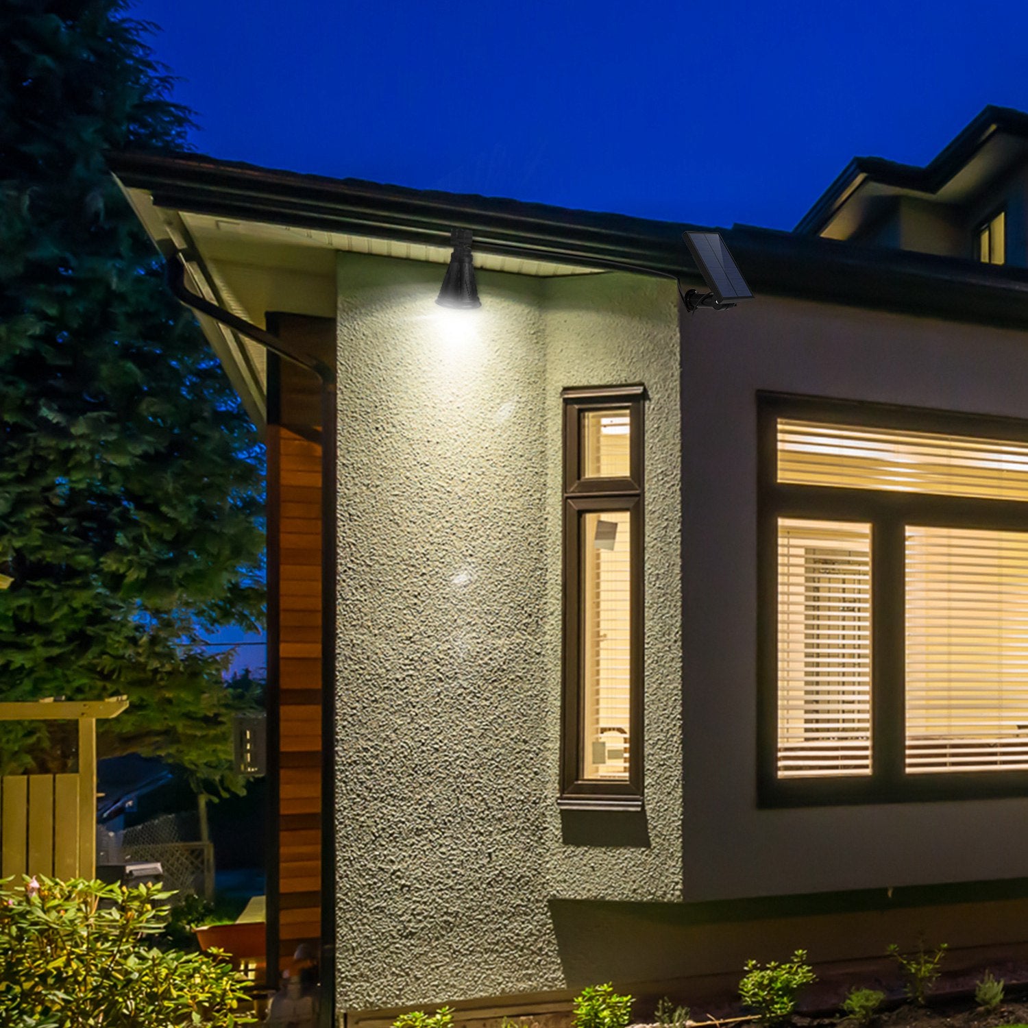 - 2 INSTALLATION WAYS:The Solar light head and Solar panel can be mounted on the wall or insert the stake into the ground to offer enough down-light or up-light.