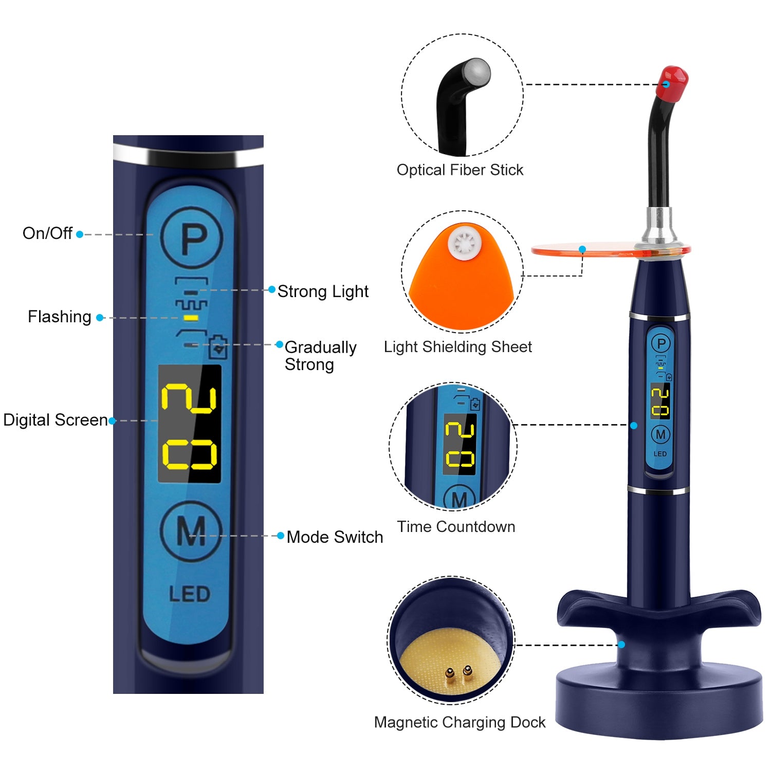 - Constant & High Light Output:This curing light outputs constant blue sensitive light(420 -480nm wavelength) with light intensity at 1500mw/cm² by drawing constant power from the built-in battery for great performance. It’s ideal for curing widely used resin dental materials including composites and sealants.