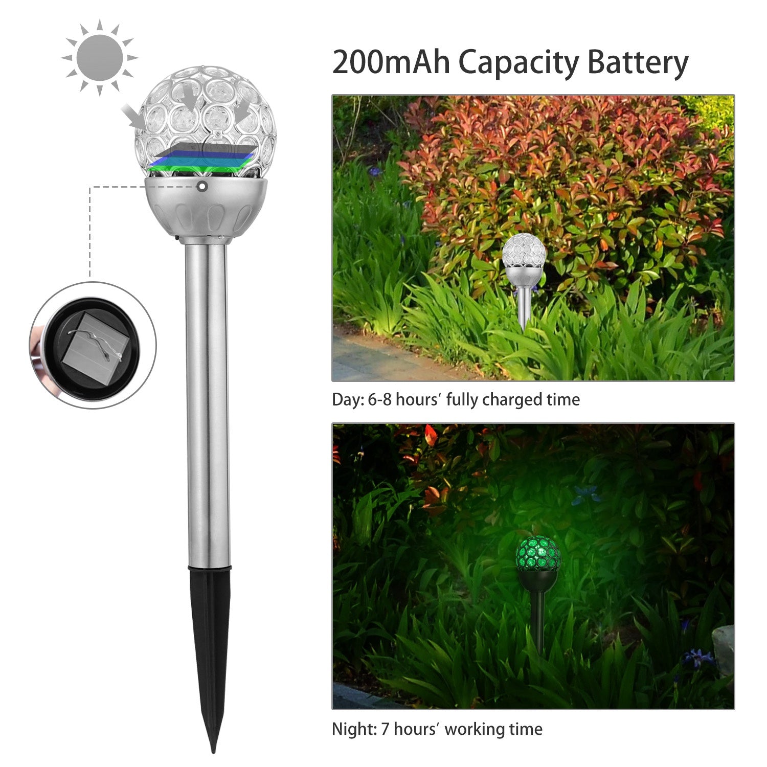 - *Durable Stainless Steel Material and Classic Outlook*:Our solar garden light adopts stainless steel material and ABS spike shell thus durable,anti-oxidation and free from color fading. Its classic appearance decorates your garden.