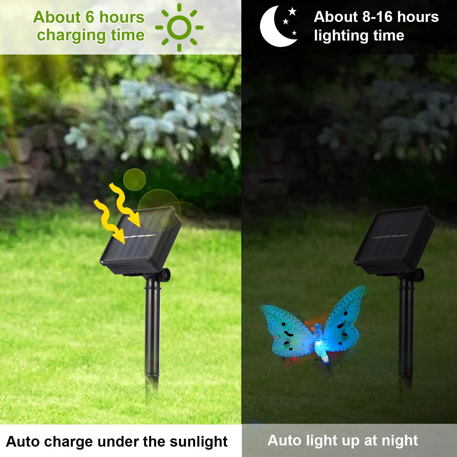 2 Pack Solar String Lights 3.8m/12.48Ft 12 LEDs Butterfly Lights IP44 Waterproof