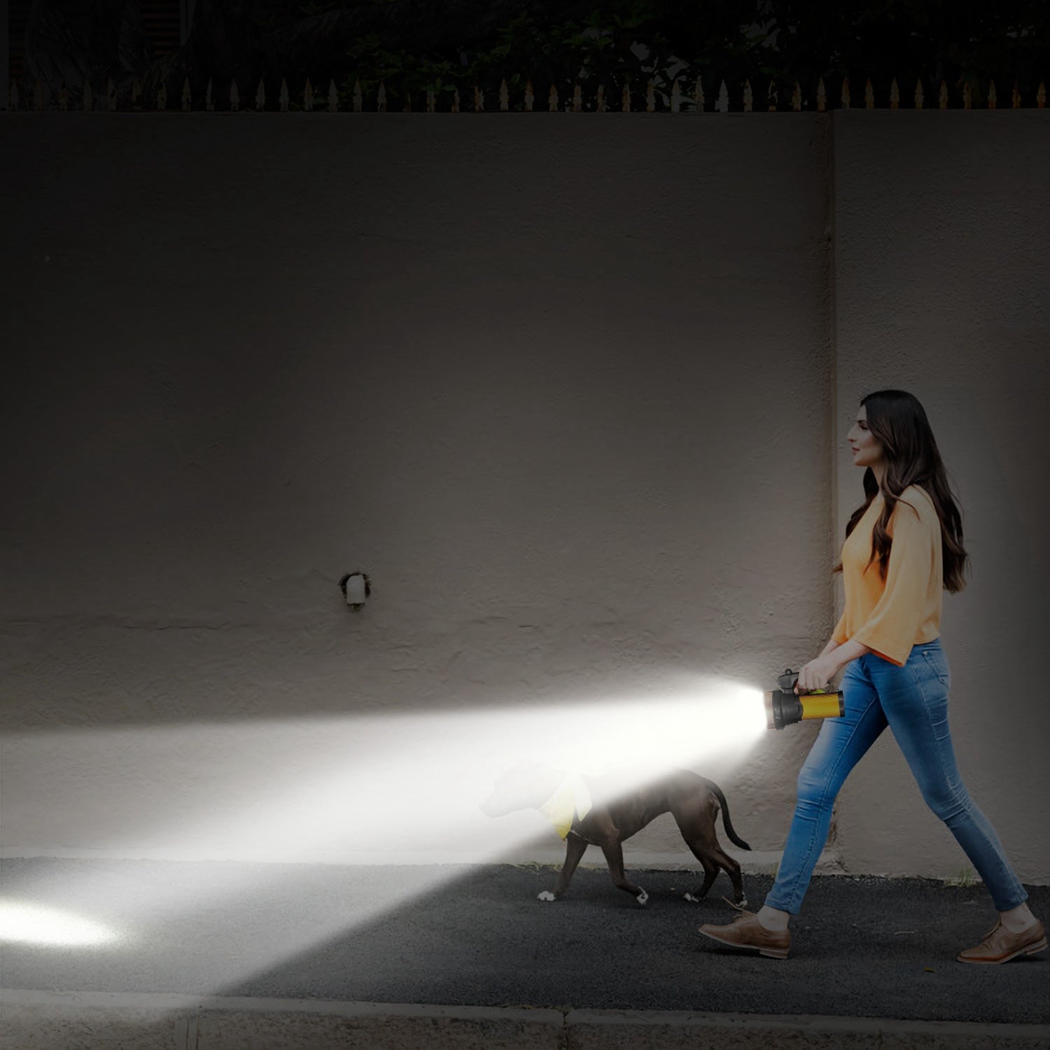 - Super Bright and Dimmable Lights:Adopts high-grade T6 LED beads which offers enough brightness and supports adjusting the brightness via its swivel operation button to meet different illuminating demands. Its maximum projection range is 800m/2624 Feets.