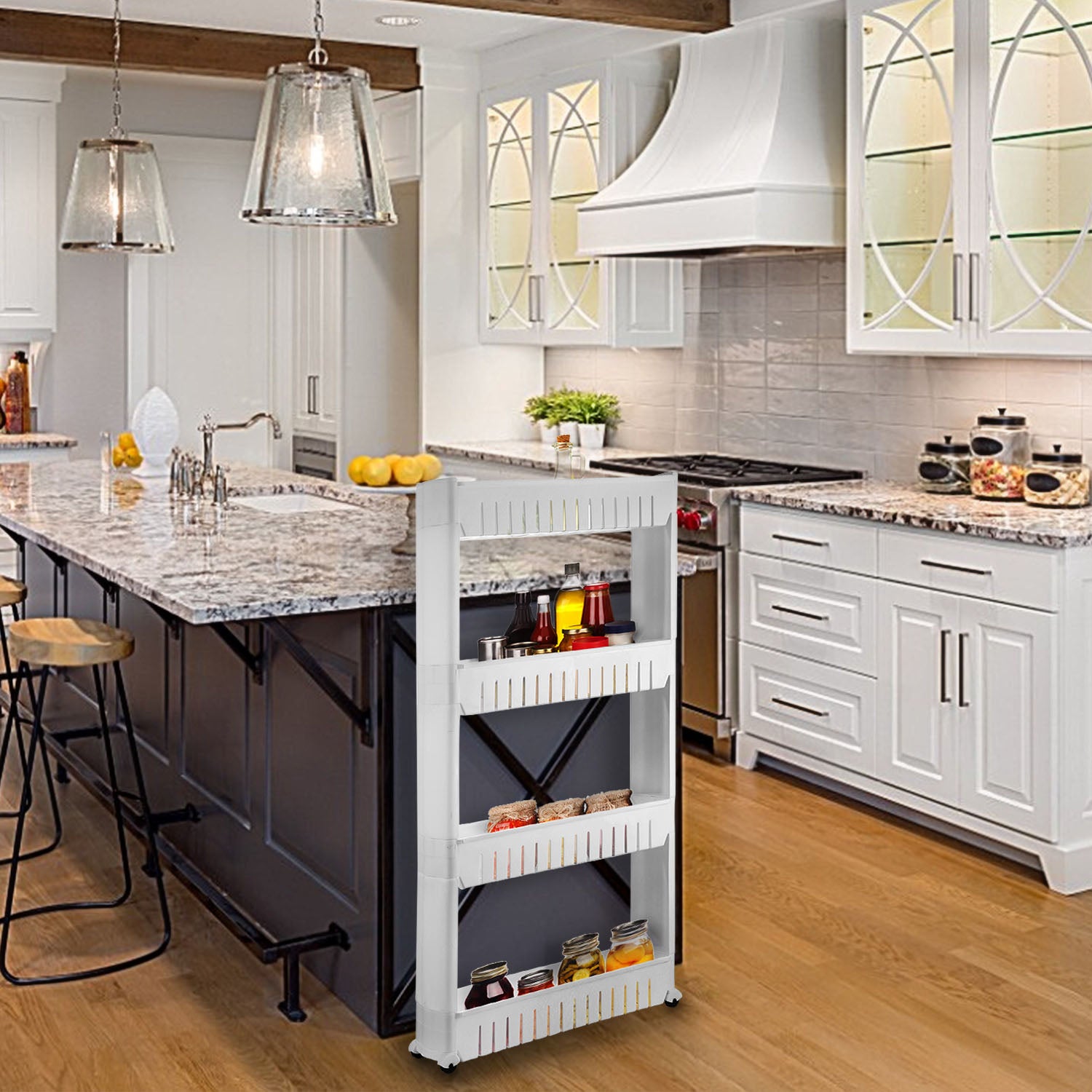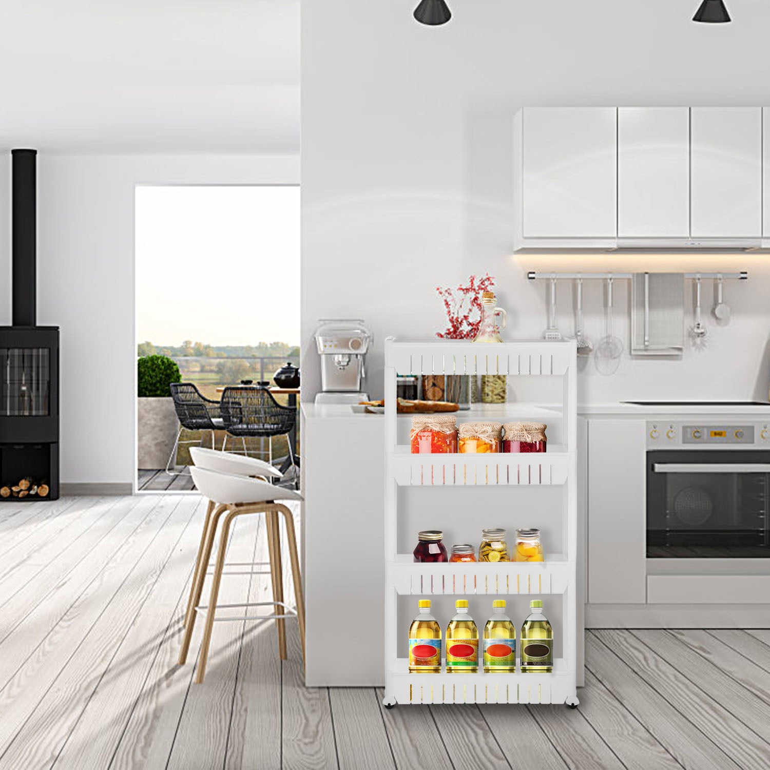 - *Compact Size with Large Storage Space*:Store and organize your home essentials or food with these 3 or 4 tiered slim storage cart .Solving the problem of narrow space and be tidy.