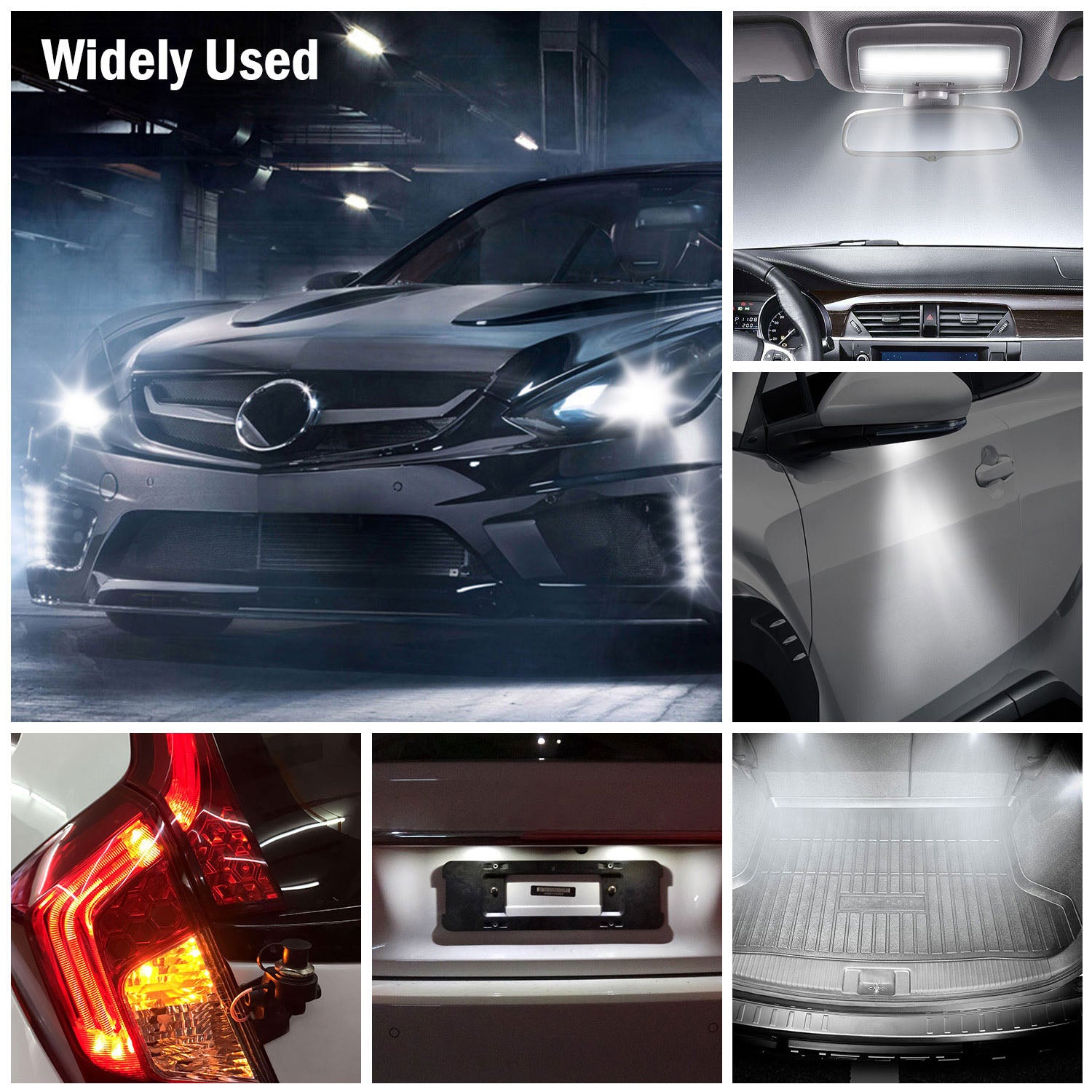 - *Widely Used*:Common use for interior(map,dome,cargo,courtesy) light,license plate light,parking light,turn signal light,corner light,side marker light,tail light,and backup lights,common use for car,truck,motorcycle,scooter,trailer,boat,marine,etc..(According to the model of your car)