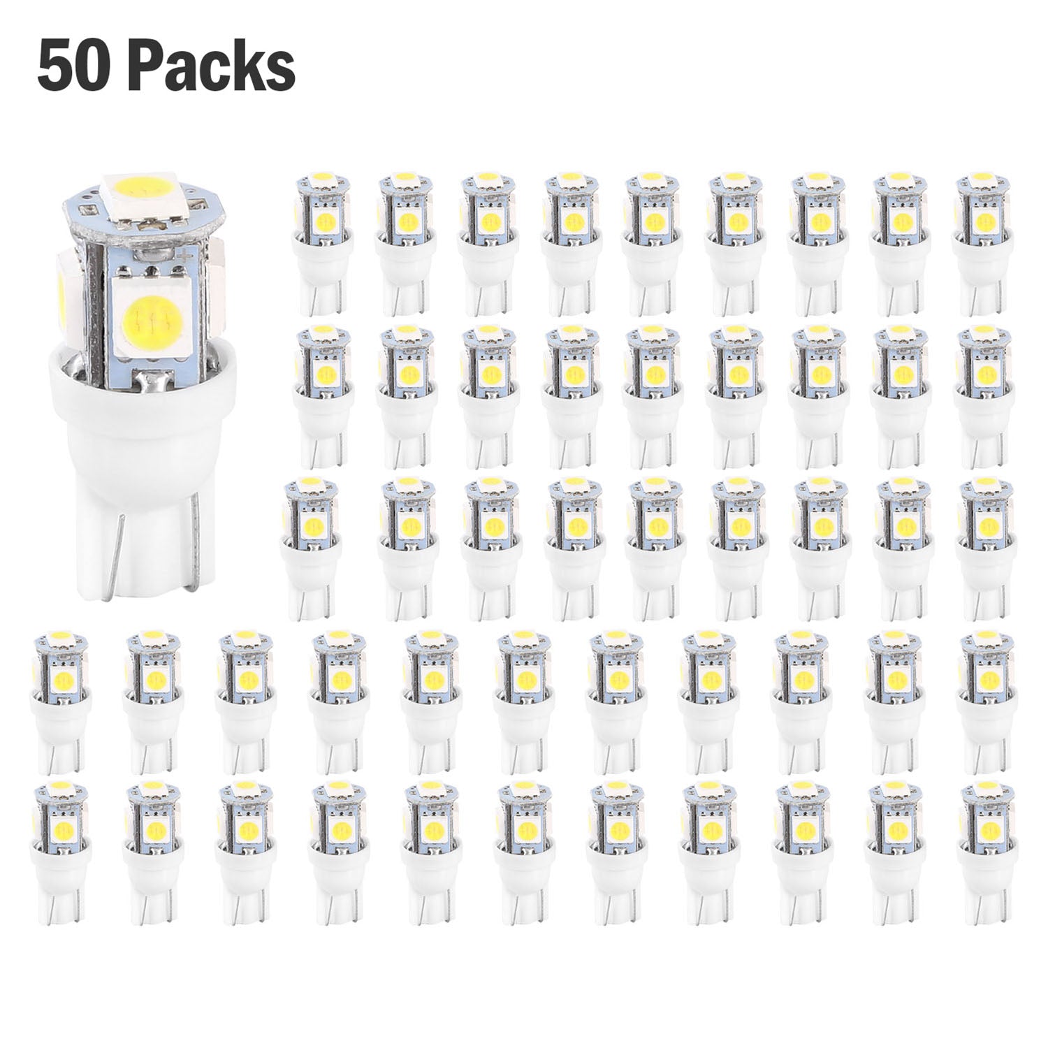 50Pcs/Kit LED Car Light Bulbs 1000lm T10 Base 5050 6000K White Auto Lamps
