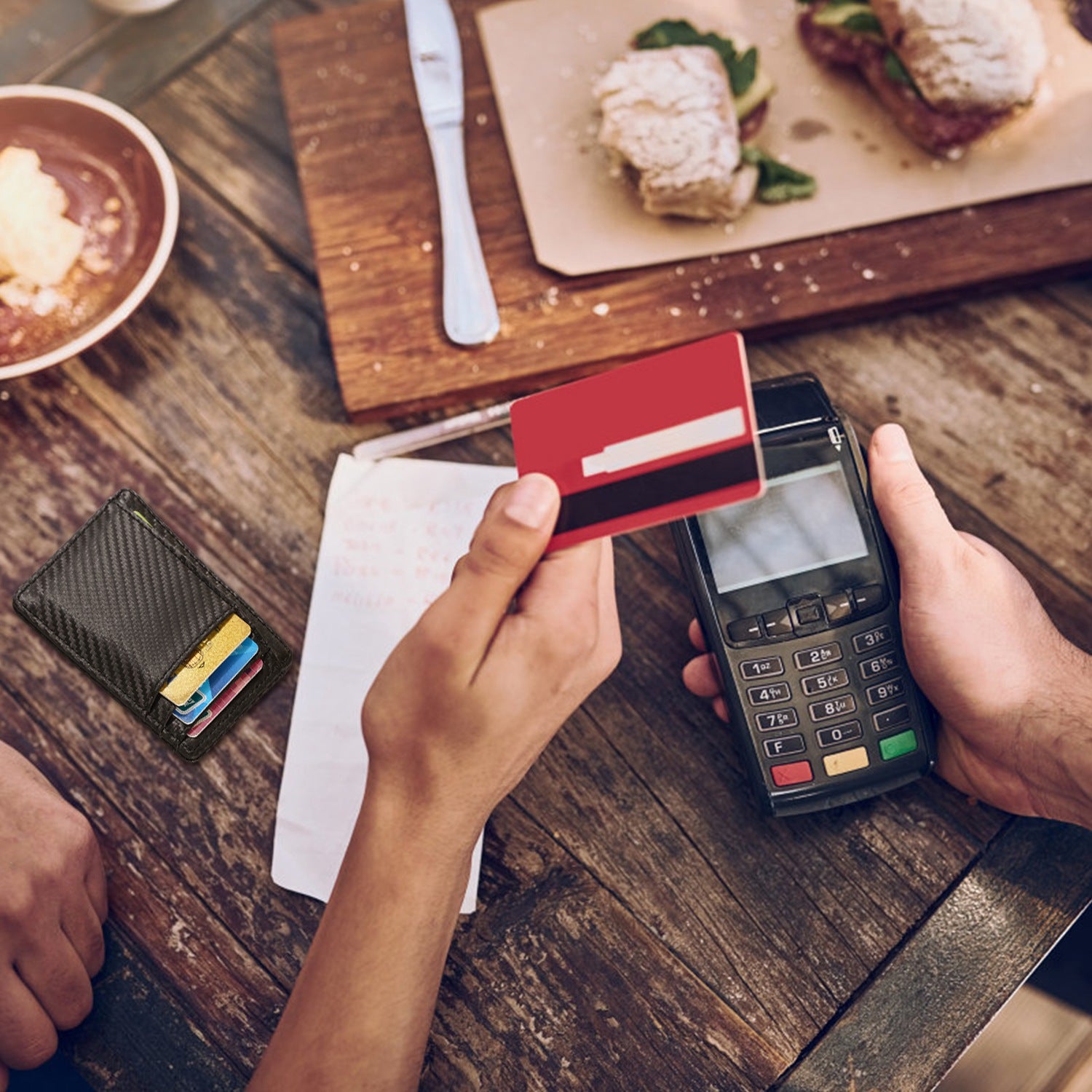 Credit Card Holder Wallet w/Cash Pocket Carbon Fiber RFID Blocking Anti Scan