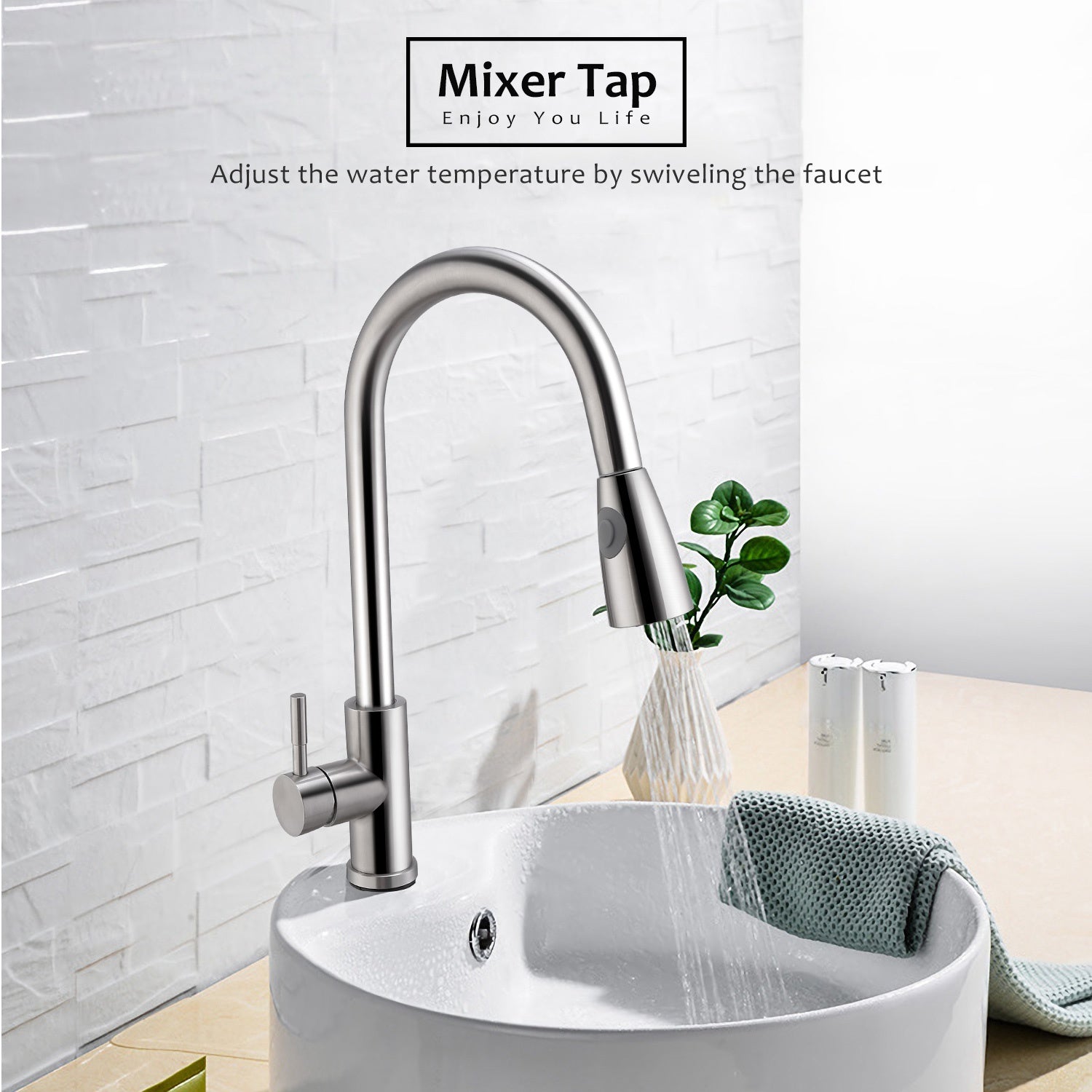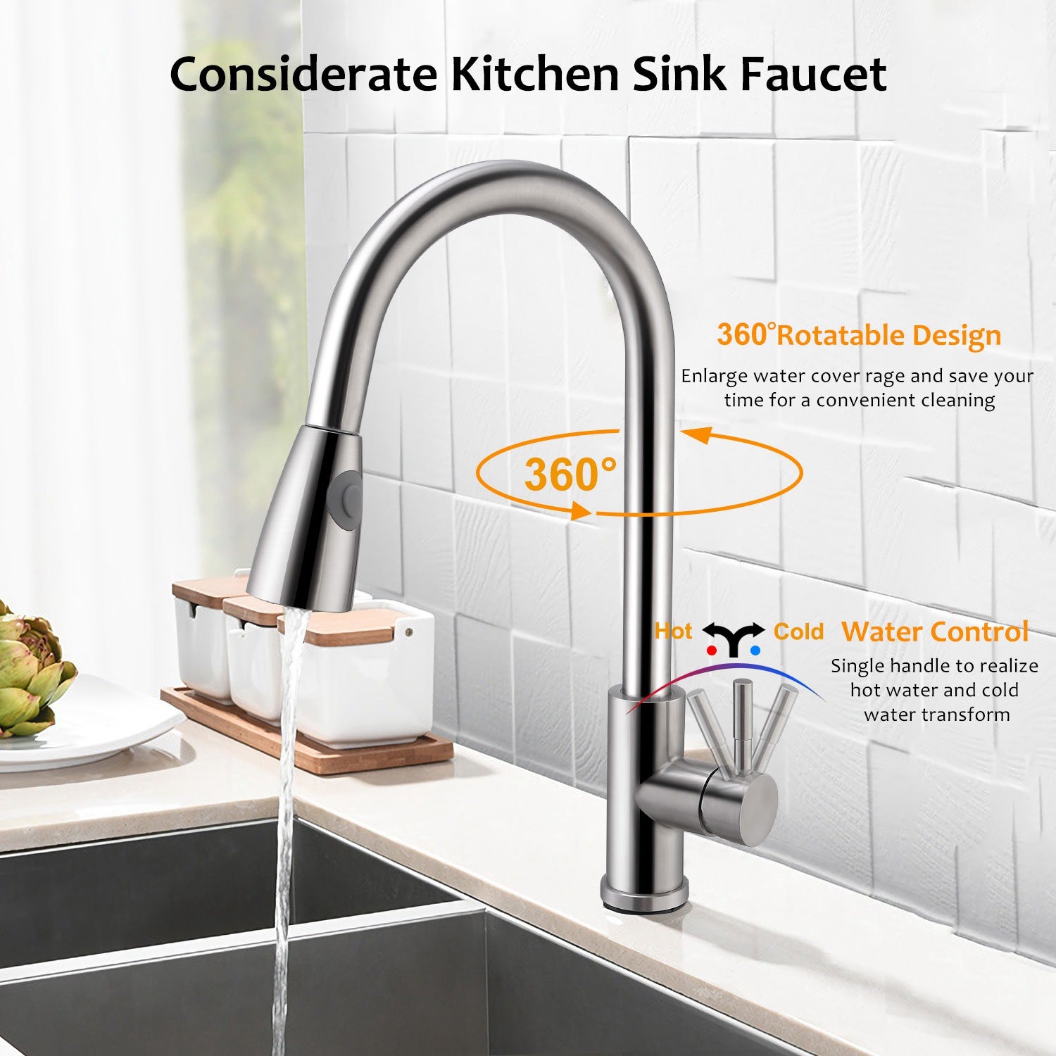 Kitchen Faucets Single Handle Kitchen Sink Faucet Brushed Nickel Stainless Steel Pulldown Head Faucet
