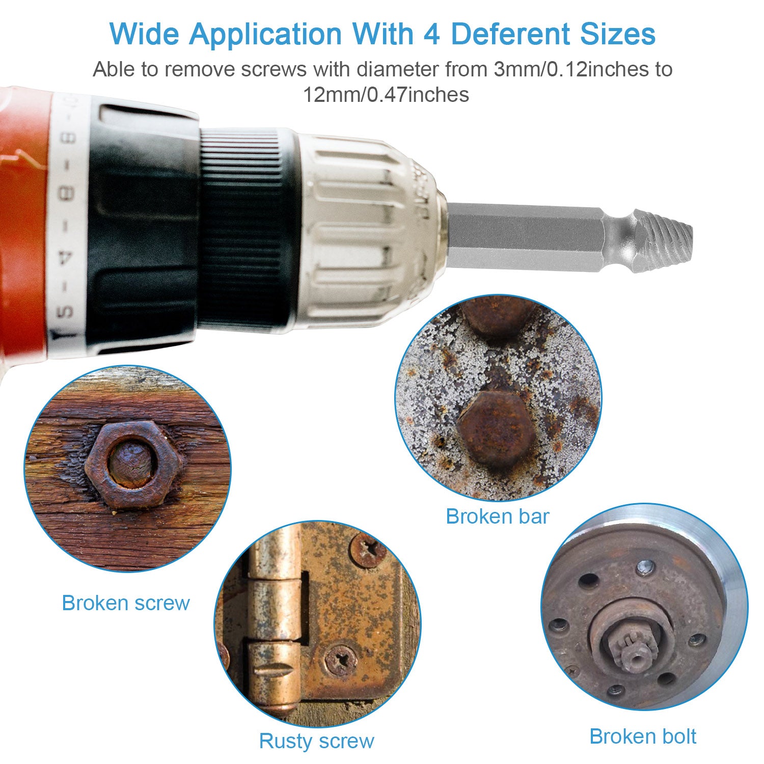 - 4 Sizes for Your Various Needs:Coming with 4 different sizes,our screw remover can be used to remove screws with a diameter from 3mm/0.12inches to 12mm/0.47inches.