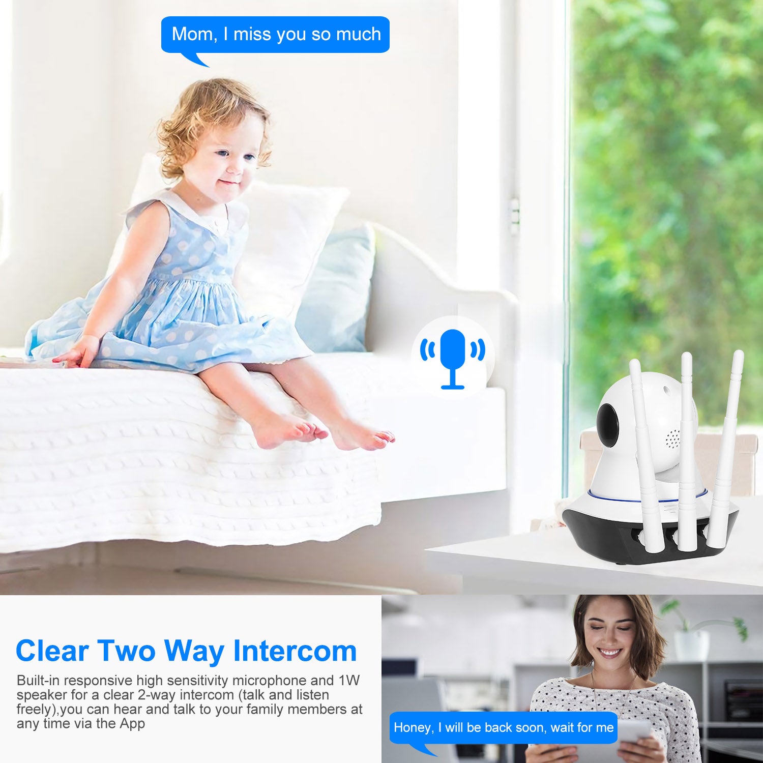- Clear Two-way Intercom:Built-in responsive high-sensitivity microphone and 1W speaker for a clear 2-way intercom(talk and listen freely),you can hear and talk to your family members at any time via the App.