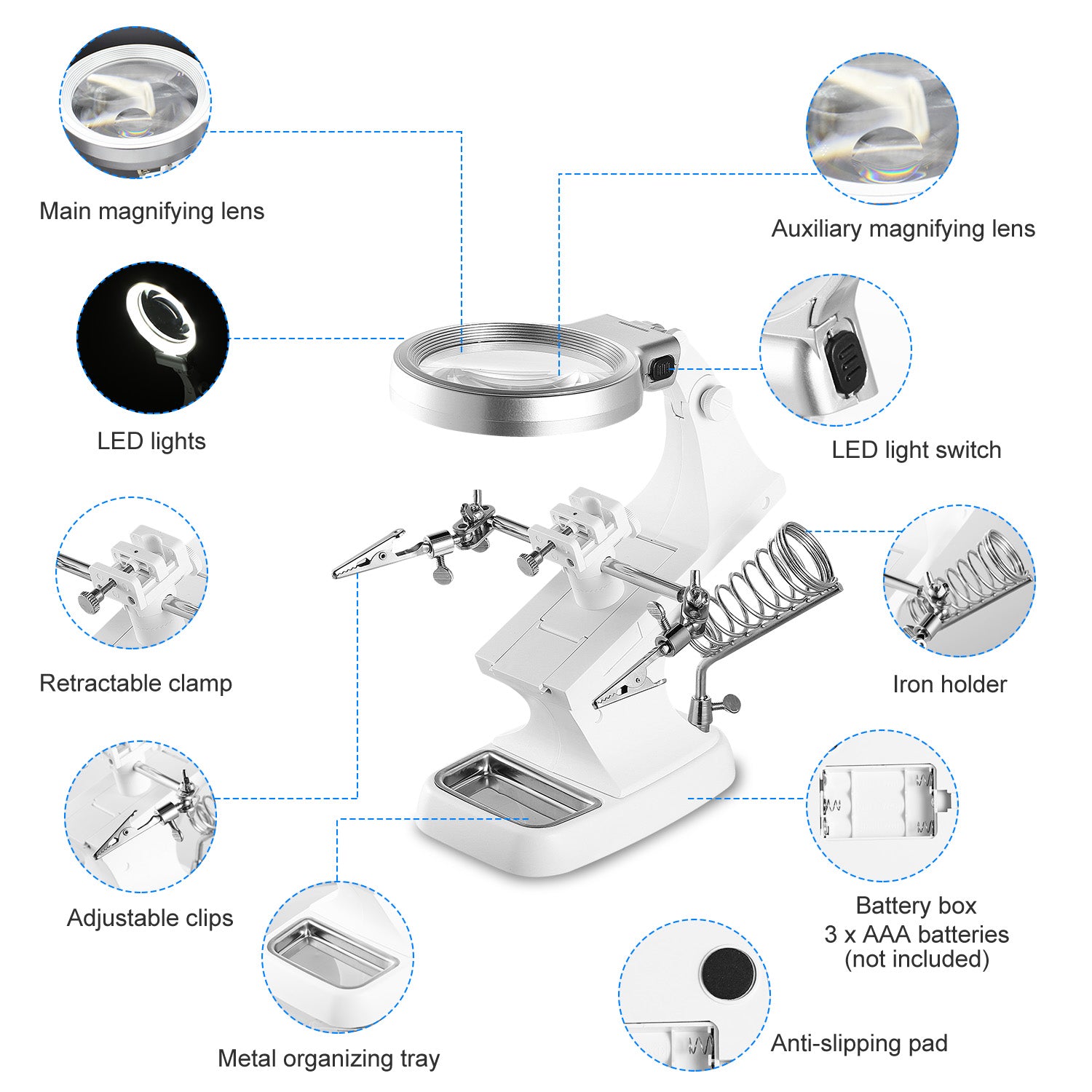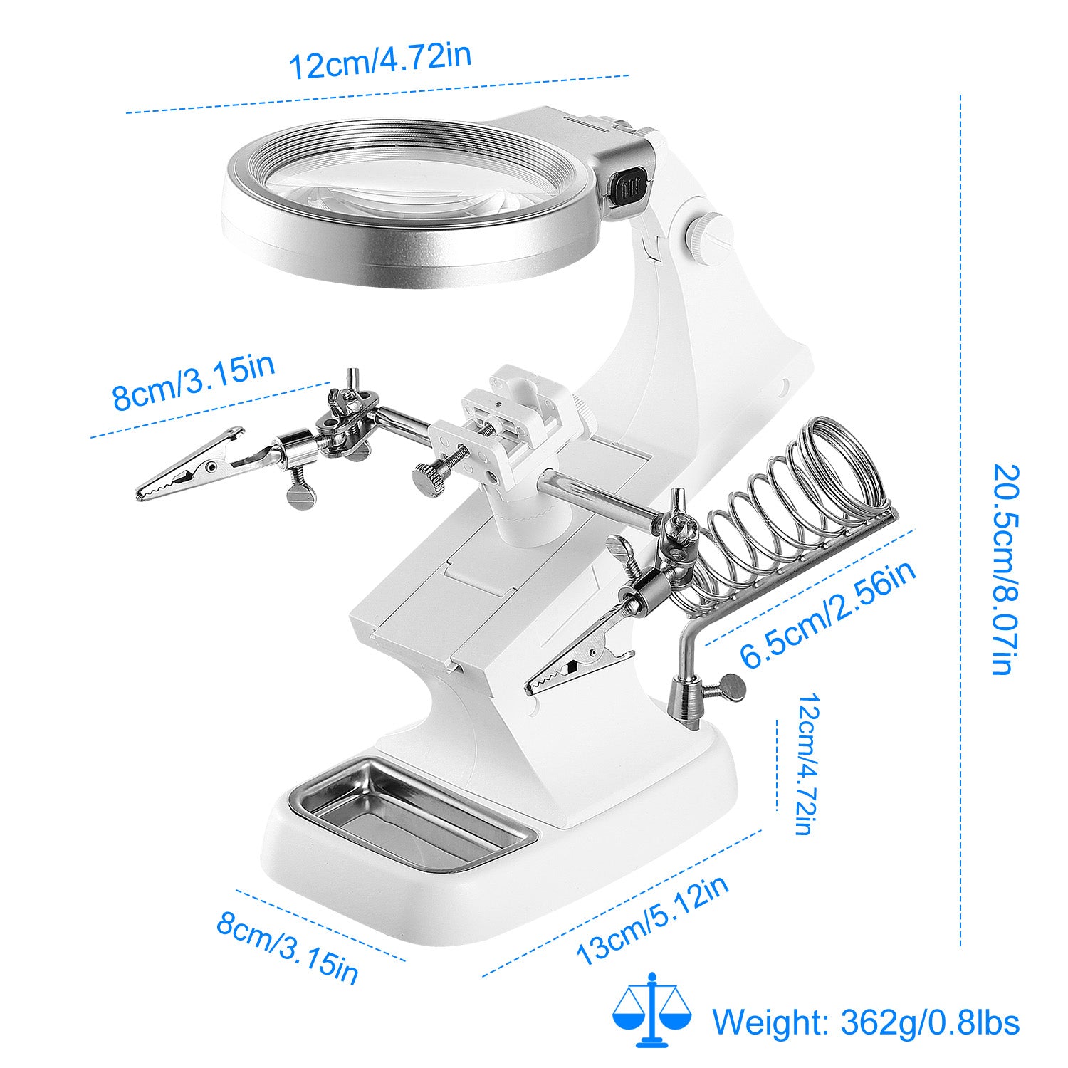 - Flexible Helping Hands Device:The entire helping hands device can remove 1.26in back and forth and 360° rotation to make you find proper observing angles easily and free your hands.
