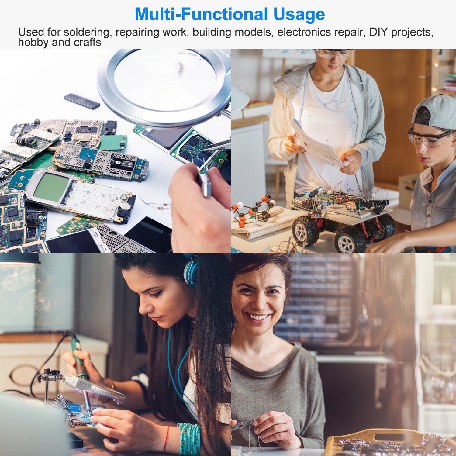 - Multi-Functional Usage:Can be used for soldering,repairing work,building models,electronics repair,DIY projects,hobby and crafts. And it can be powered by 3pcs AAA batteries(Not Included) or USB charging directly,you do not have to worry about it will no power any more.