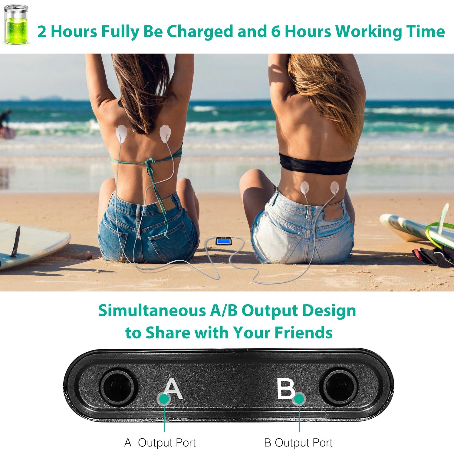 - Simultaneous A/B Output Design to Share with Your Friends:Designed with 2 wire sets and 2 output ports,4 pads can be used in one person every time or you can share A/B port(2 pads) to your friend.