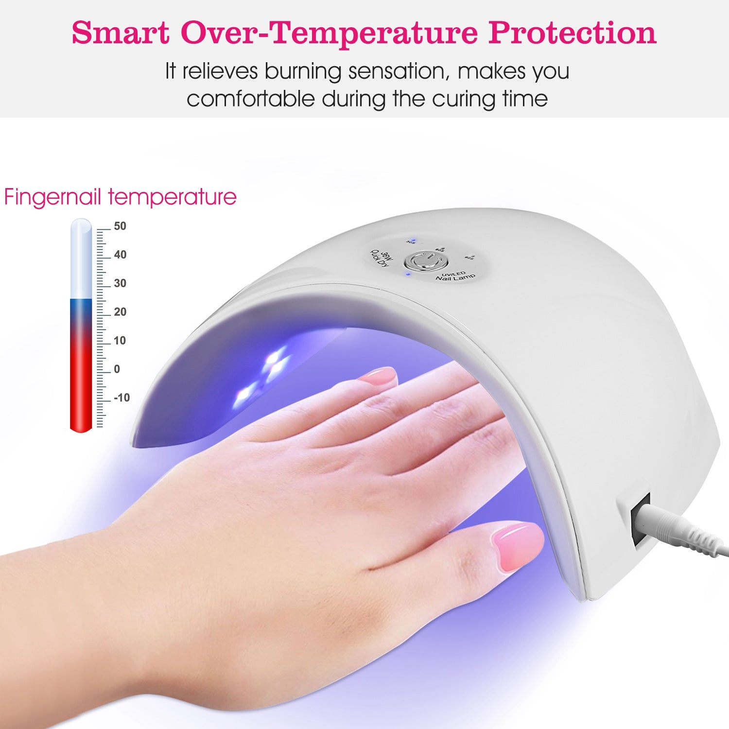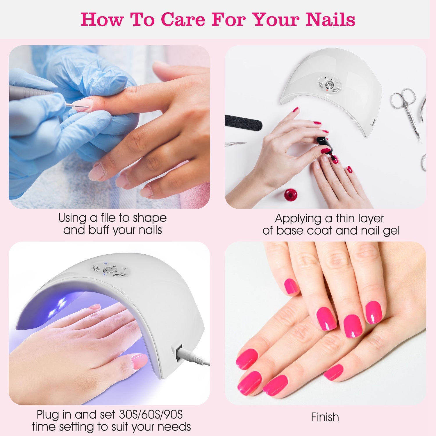 - Widely Used For Curing All Gels:Our nail dryer is applicable to curing almost all nail gels evenly without dead zone!Suitable for drying nail UV-glue,builder glue,nail polish gel,sculpture gel,gem glue and LED nail gel. Ideal for home & salon nail beauty.