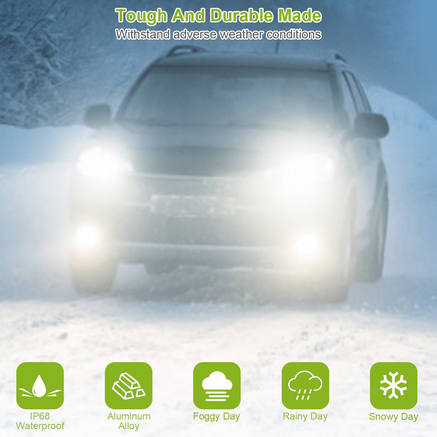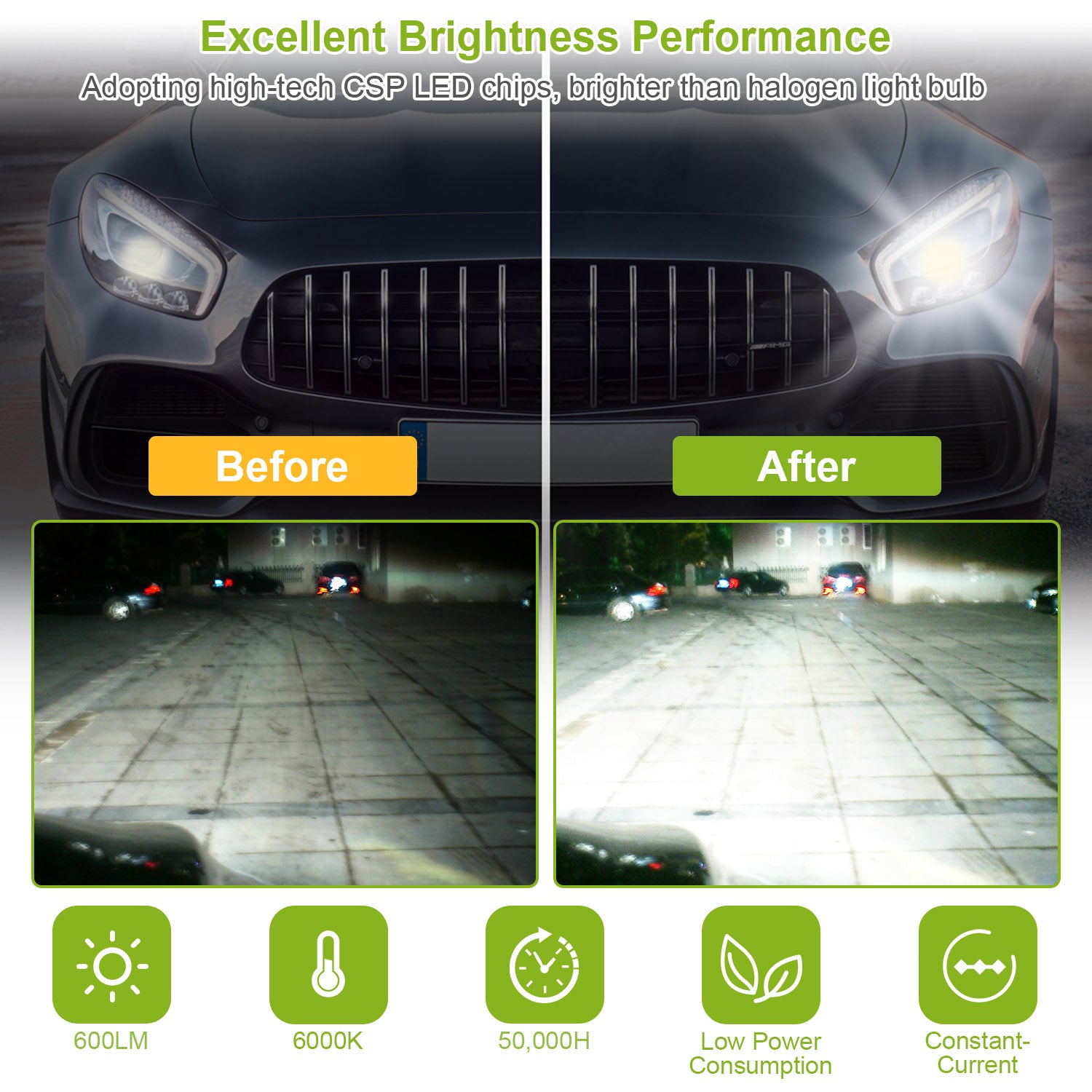 - Bright and Stable Light Performance:Adopting 6pcs high-tech CSP LED chips and built-in constant-current e-component driver,our LED light bulb features 600lm brightness,6000K white color temperature and high penetration to provide you a bright,stable and wide light beam especially in rainy,foggy and snowy day.