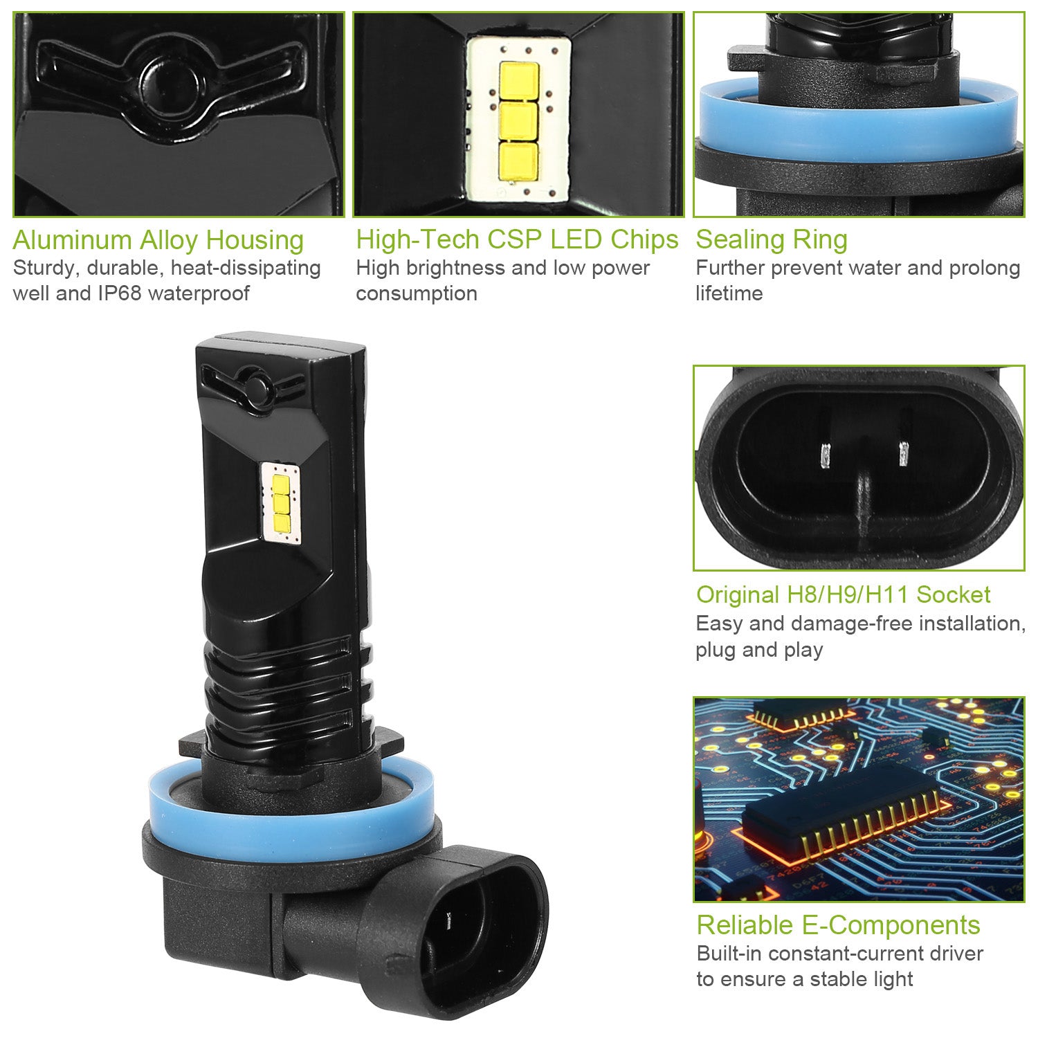 - Suitable Sockets: H8/H9/H11