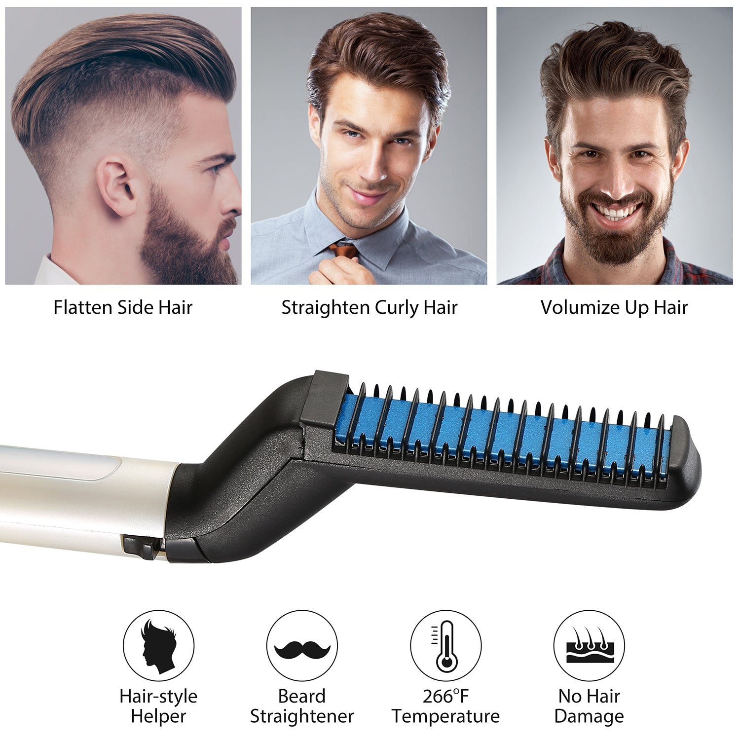 - **DESIGNED FOR MEN*:Our Beard & Hair Straightener is a quick heated straightening comb for men to smooth out facial hair or quickly create a fashionable hair style effortlessly in short time. Let men start and end one day with a charming and exquisite look.