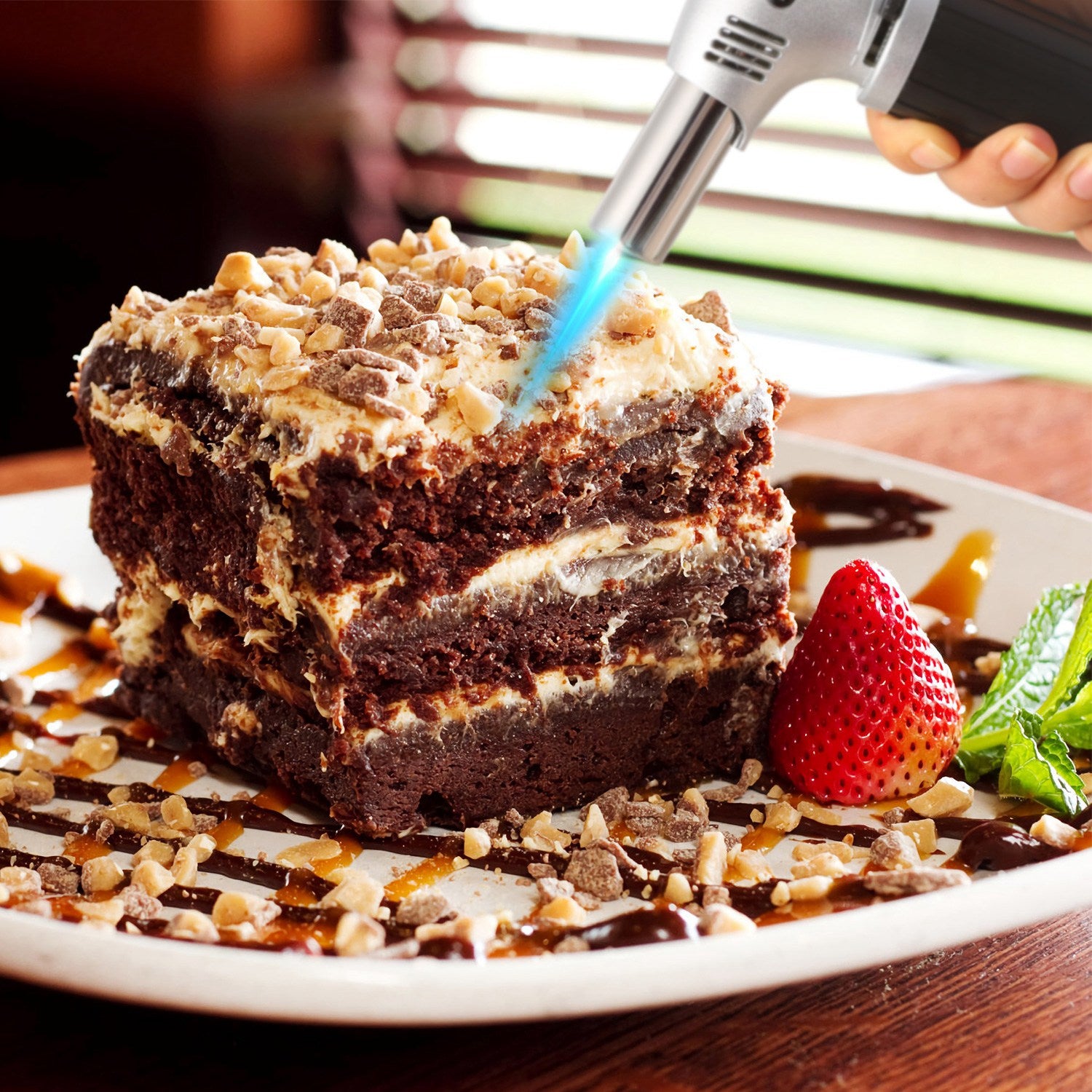 - ** MULTI-PURPOSE*:Great chef kitchen cooking torch for caramelizing foods,glazing a baked ham,searing a steak,roasting bell peppers,melting cheese,toasting bread crumbs,outdoor BBQ etc. and also ideal for soldering DIY jewelry,heat shrink tubing,lighting your fireplace and cigar or as a survival tool.