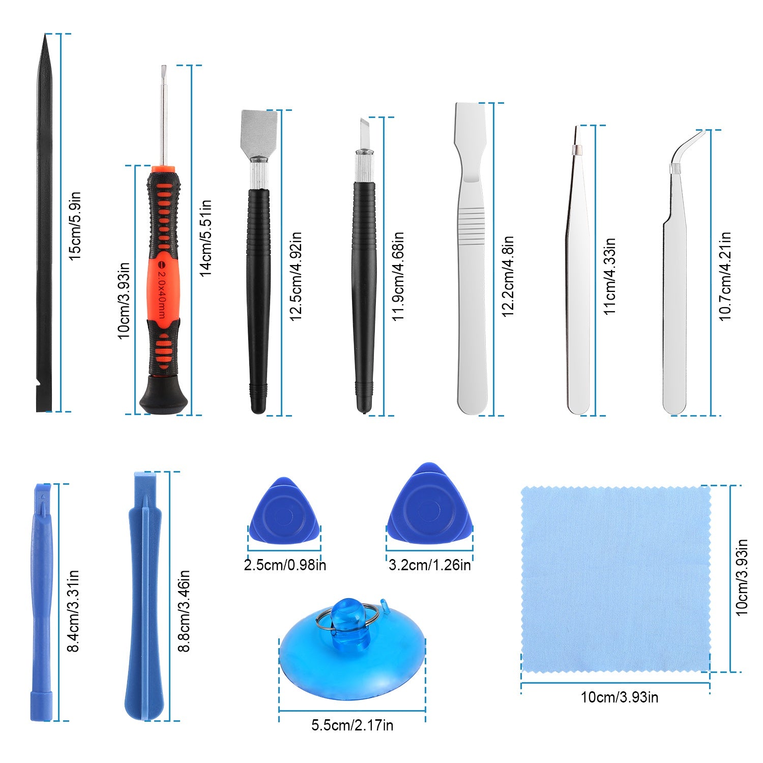- **PROFESSIONAL REPAIR TOOL KIT*:Except well-equipped screwdrivers, it also comes with different-sized triangle opening paddles and different-typed pry tools for dismantling the electronics easily and scraper and carver for sticking film quickly and so on.