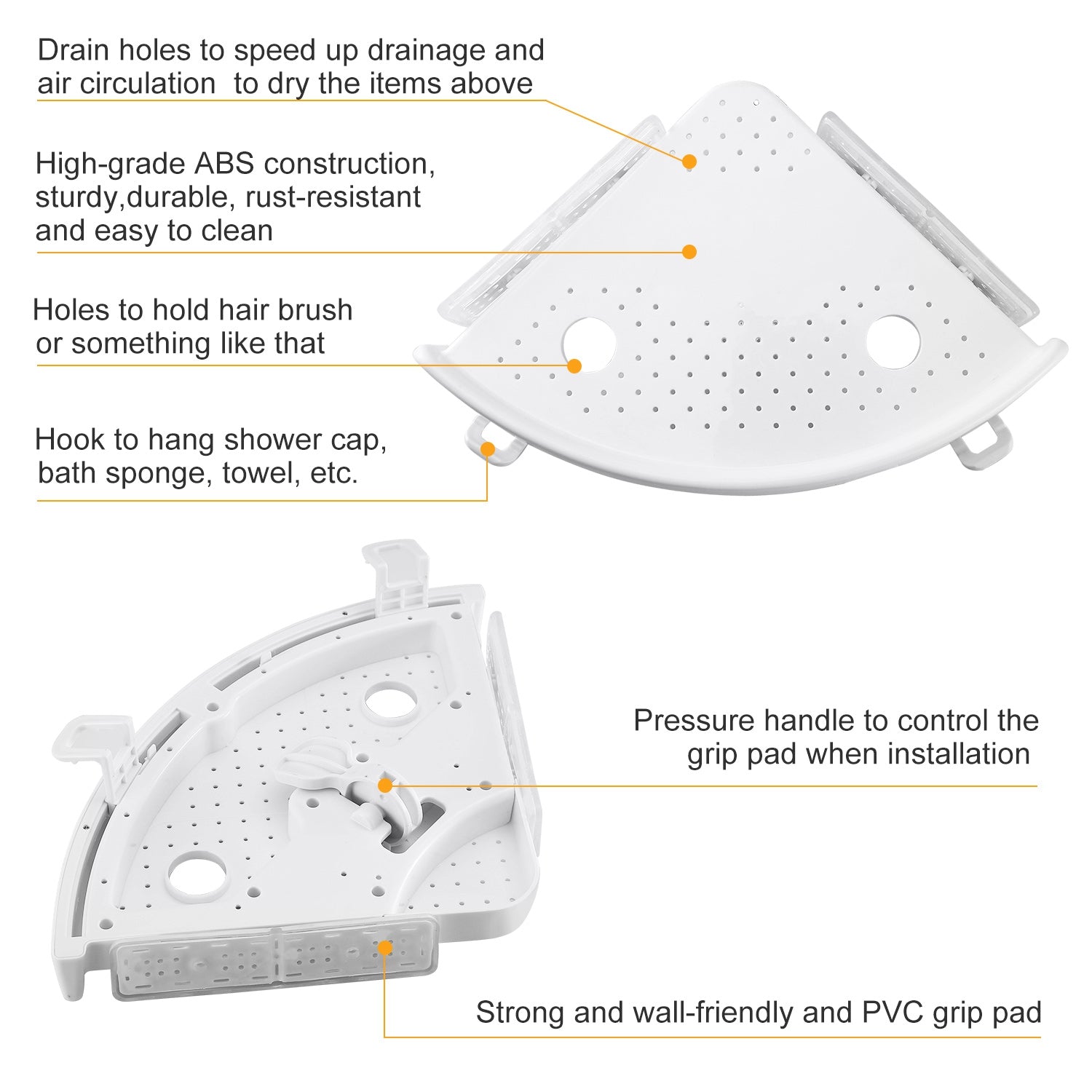- **STURDY ABS CONSTRUCTION*:Made from high-grade ABS materials,our corner shelf is sturdy, durable, rust-resistant and easy to clean.