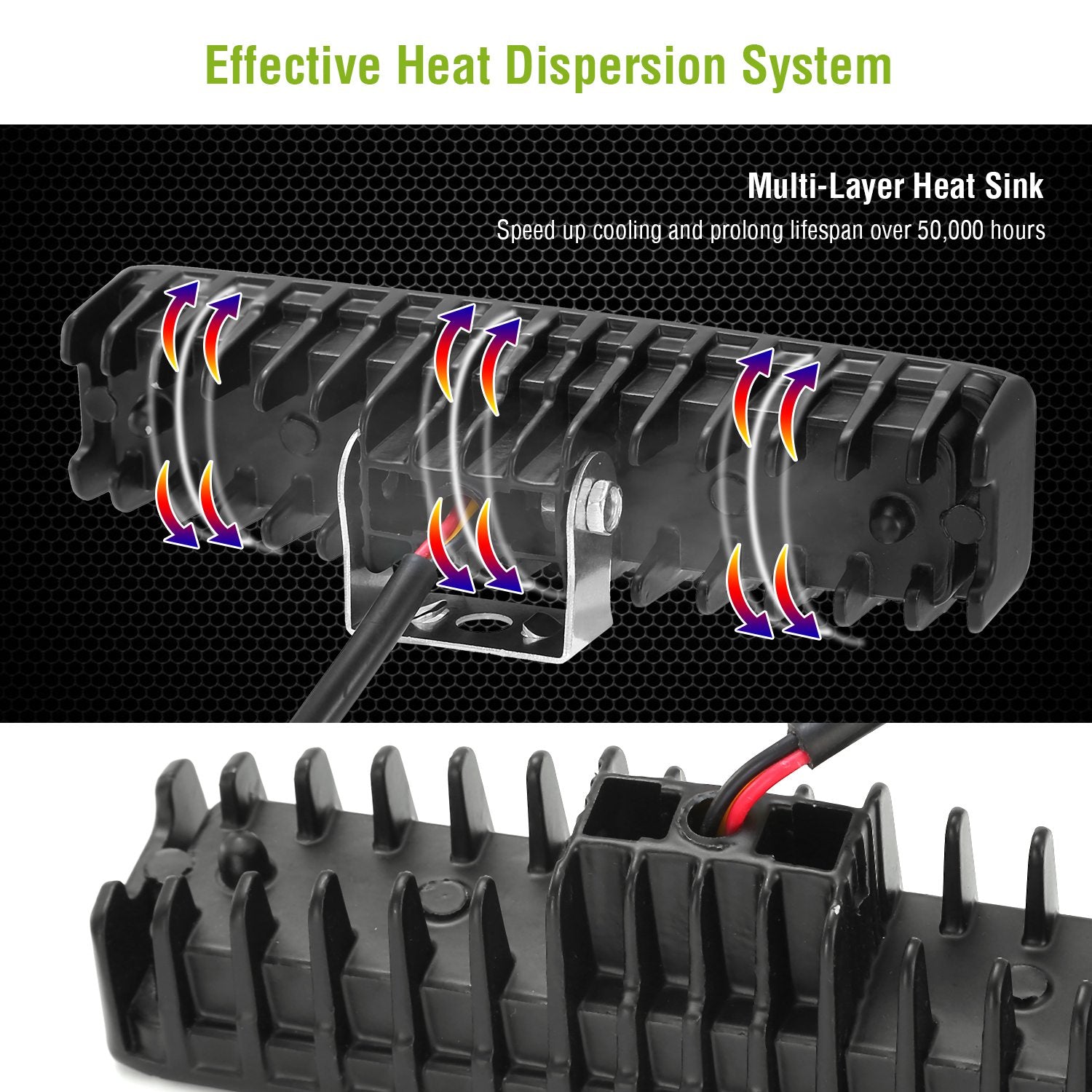 - Long Lifetime:Coming with an eco-friendly external heat-sink design,our LED light bar has low power consumption,which allows it to work approx. 50,000 hours.