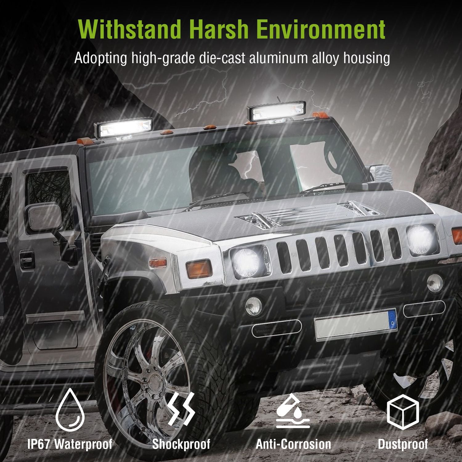 - STURDY AND DURABLE:Adopting high-grade aluminum alloy materials with die-casting process,our LED light bar is compact,shockproof,anti-corrosion and IP67 waterproof to work well even in bad weather conditions.