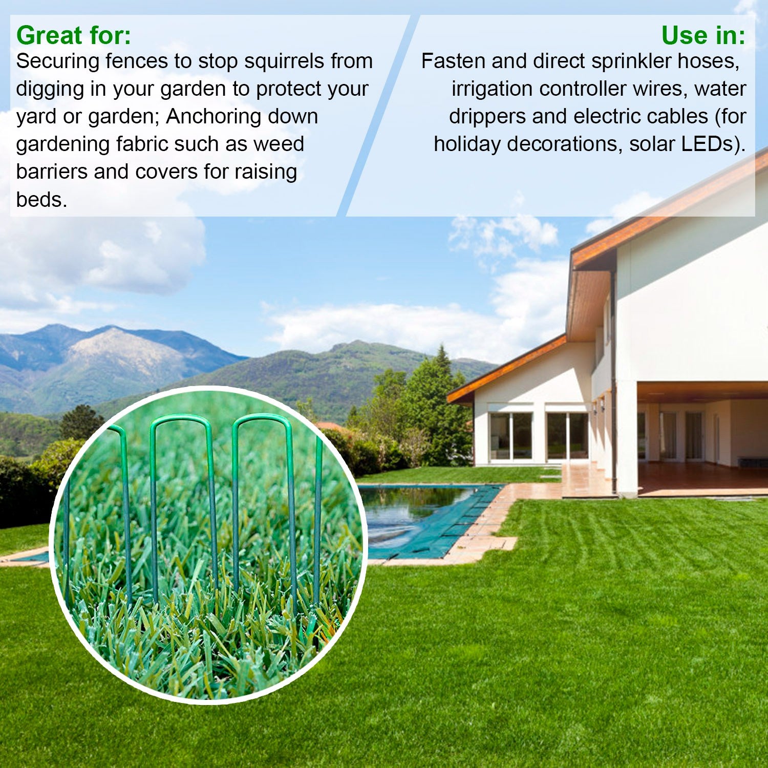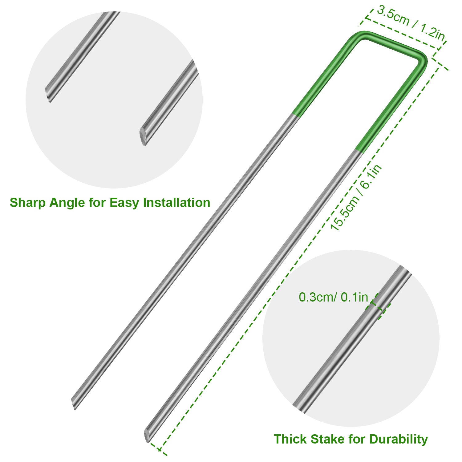 * EASY INSTALL*:Sharp tipped pilot ends help u-pins with ground penetration. A rubber mallet should only be required for tough soil or gravel. Perfect for backyard landscapers to complete various projects and installations near your home or shed turf.
