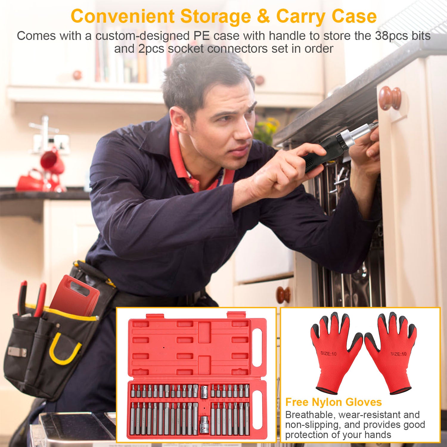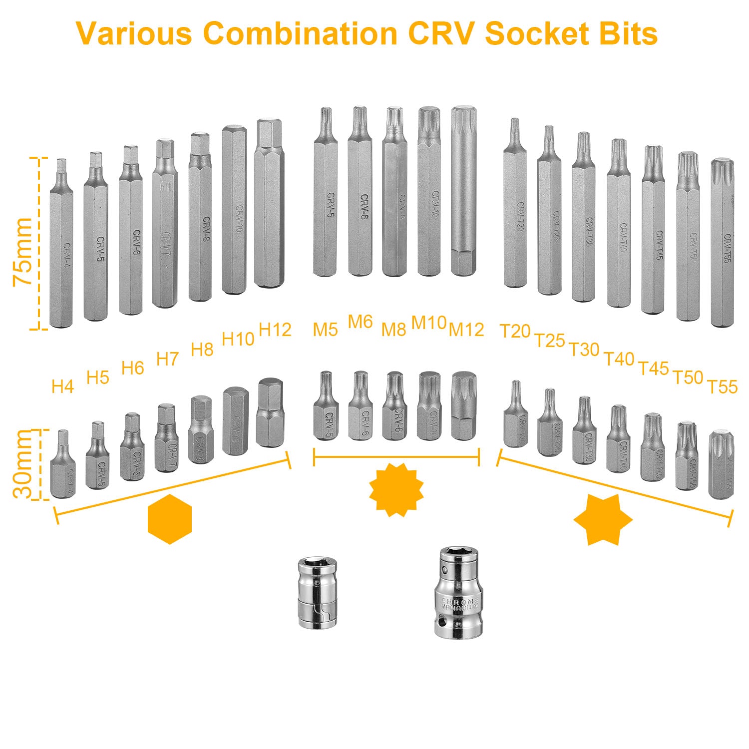 40Pcs Socket Bit Set Hex Torx Spine CRV Combination Bits