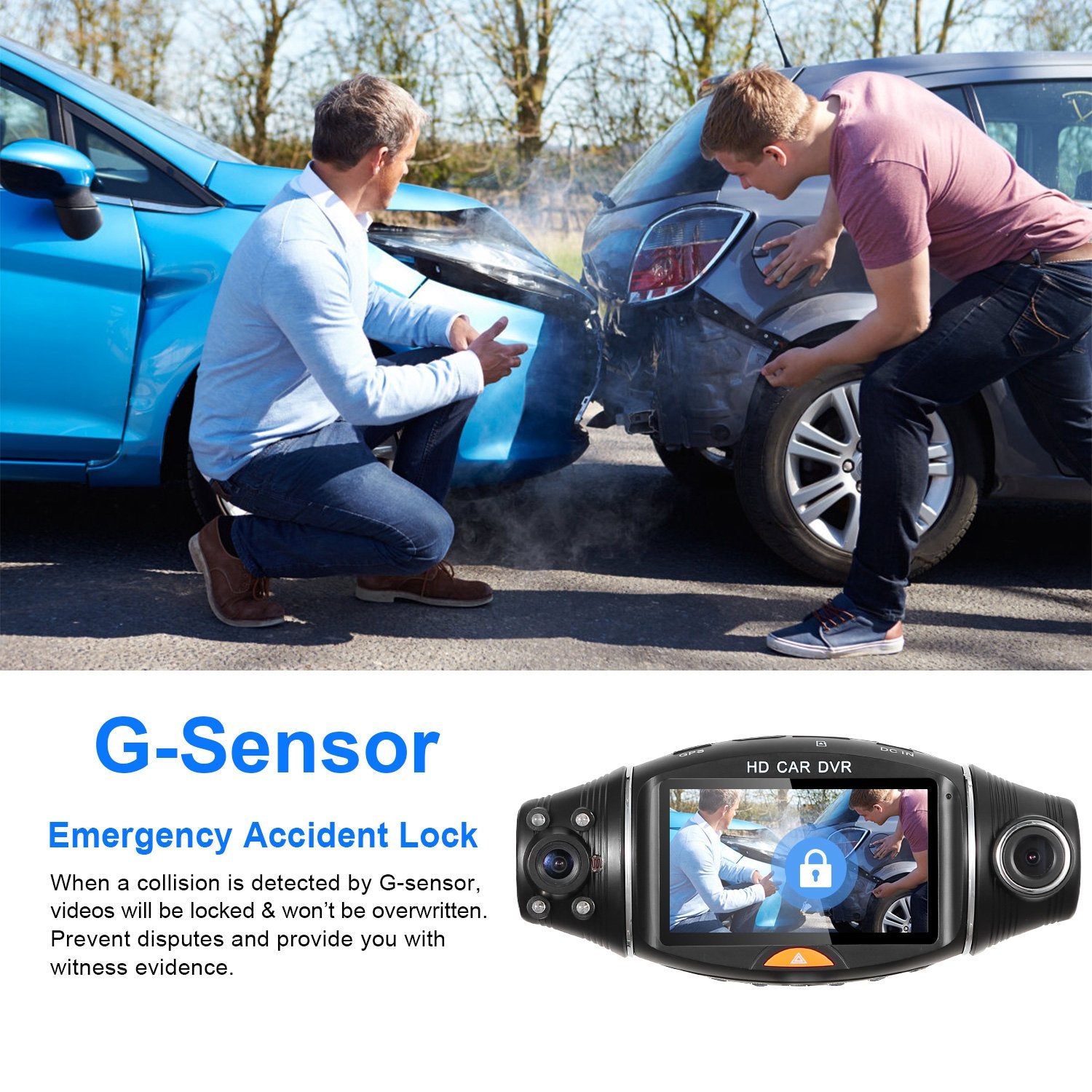 - **BUILT-IN G-SENSOR*:Built-in G-sensor,when sudden event such as a car collision or a sudden turn,can automatically record and store it,in order to provide evidence of the accident,videos will be locked & won't be overwritten. Protect yourself from fraudulent lawsuits on the road. Using specified software,watch the video on your PC and see changes in gravity sensing data to trace the course of gravity in the road.