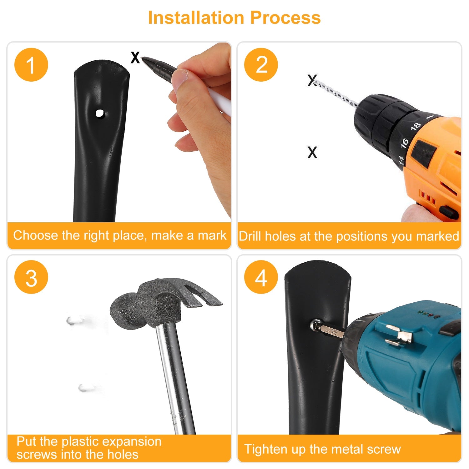 - EASY TO INSTALL:Make a small pencil mark where the center of the screw will go,and drill a hole in the spot(s) you marked. Then insert the drywall anchors into the hole. Lastly,screw the bolt by using a screwdriver.