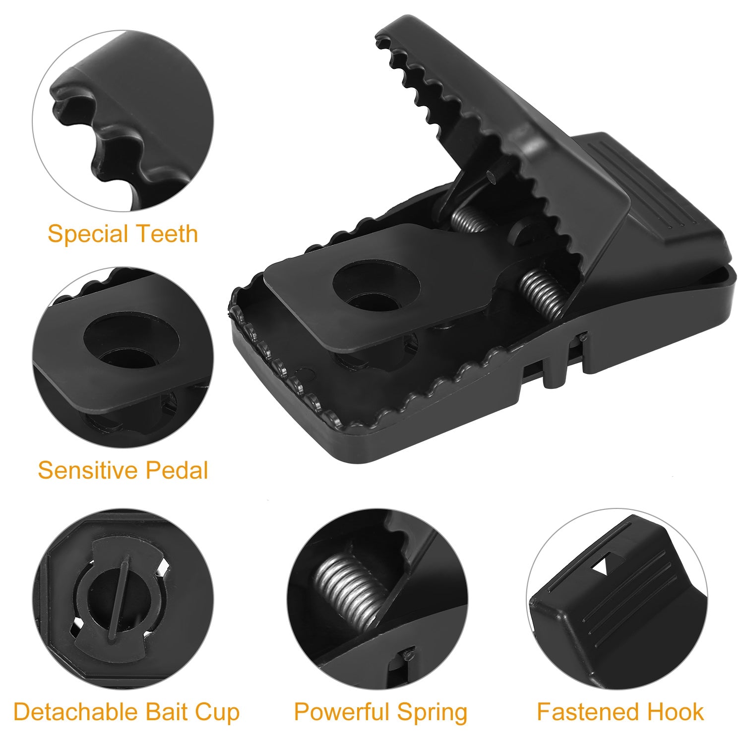- Powerful & Effective:These durable rodent traps offer increased capturing power with no false triggers. With its sleek,easy-to-use design,this all-new aggressive snap trap comes with a more responsive and precise trigger mechanism,making it faster and easier to set than traditional wood traps.