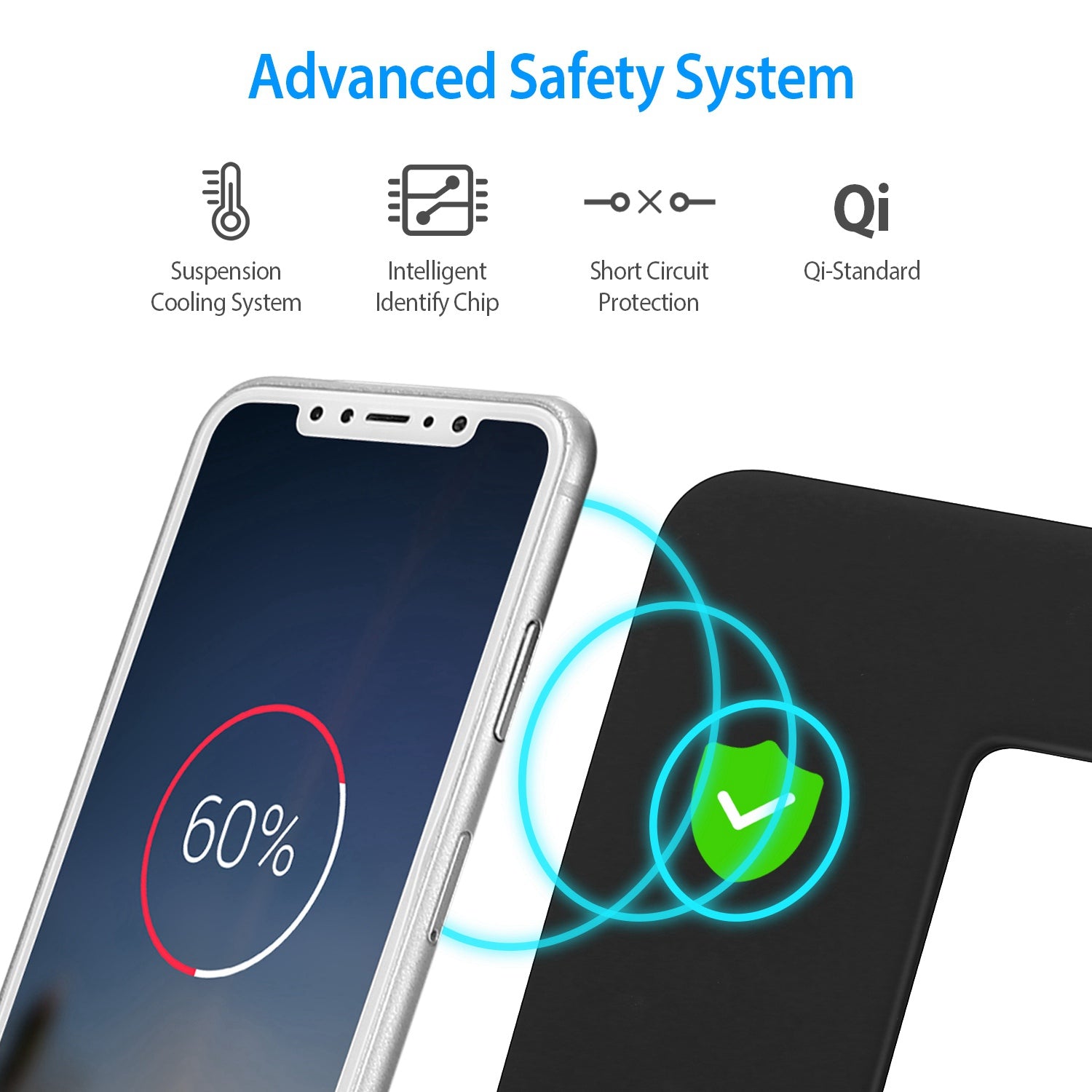 - 15W Fast Charging:7.5W fast charging mode for iPhone 11/11 Pro/11 Pro Max/XS Max,XS,XR,X / 8/8 Plus. 15W fast wireless charging,suitable for Huawei P30 Pro,Mate 20 Pro,Mate 20 RS. 10W wireless charging for Samsung Galaxy S10,S10 Plus,S10E,S9 Plus,S9,Note 9,Note 8,S8,S8 Plus,S7,S7 Edge. Other Qi standard phones support 5W wireless charging.(Mobile phones with wireless charging can be charged.)