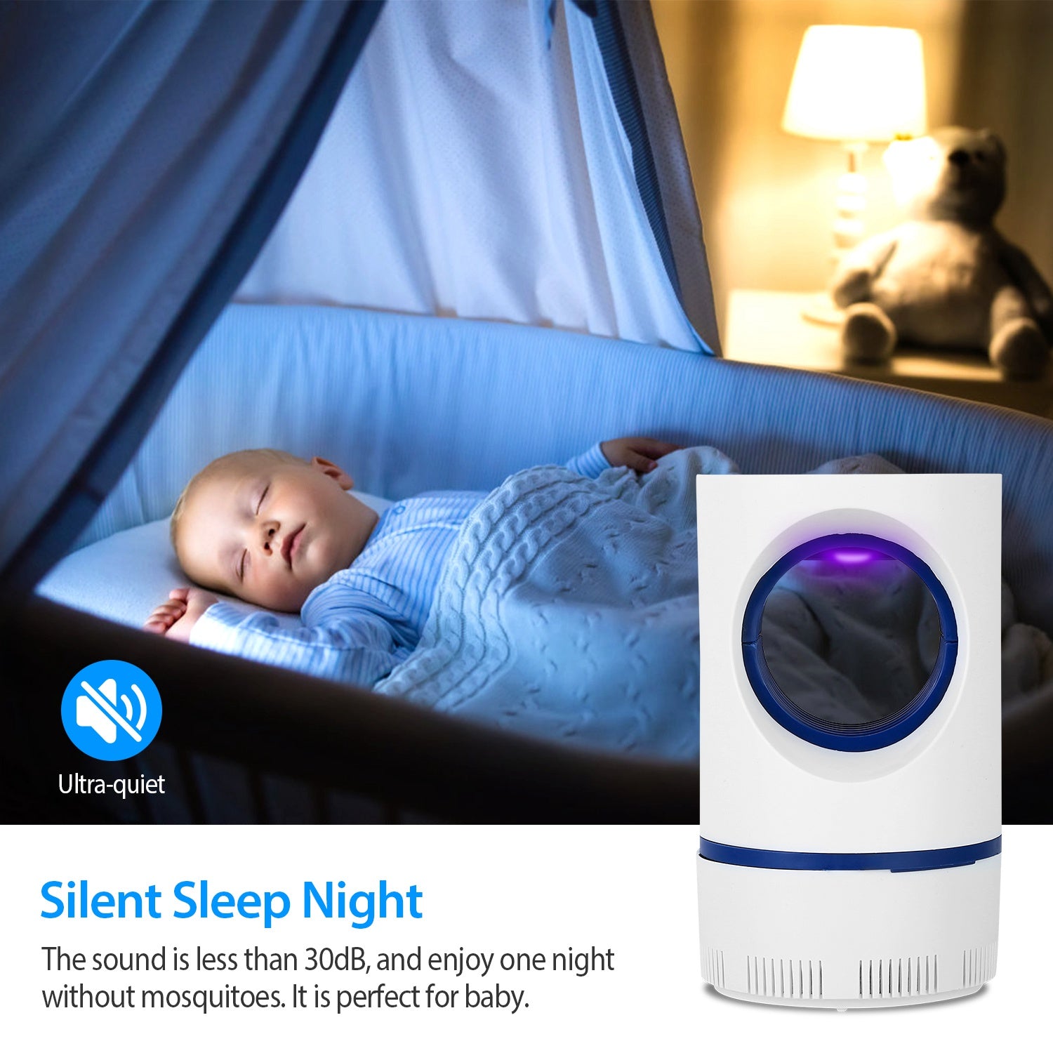 - Silent Sleep Night:The sound is less than 30dB,and enjoy one night without mosquitoes. Please do not put this insect killer near you and put it under the bed for better results.