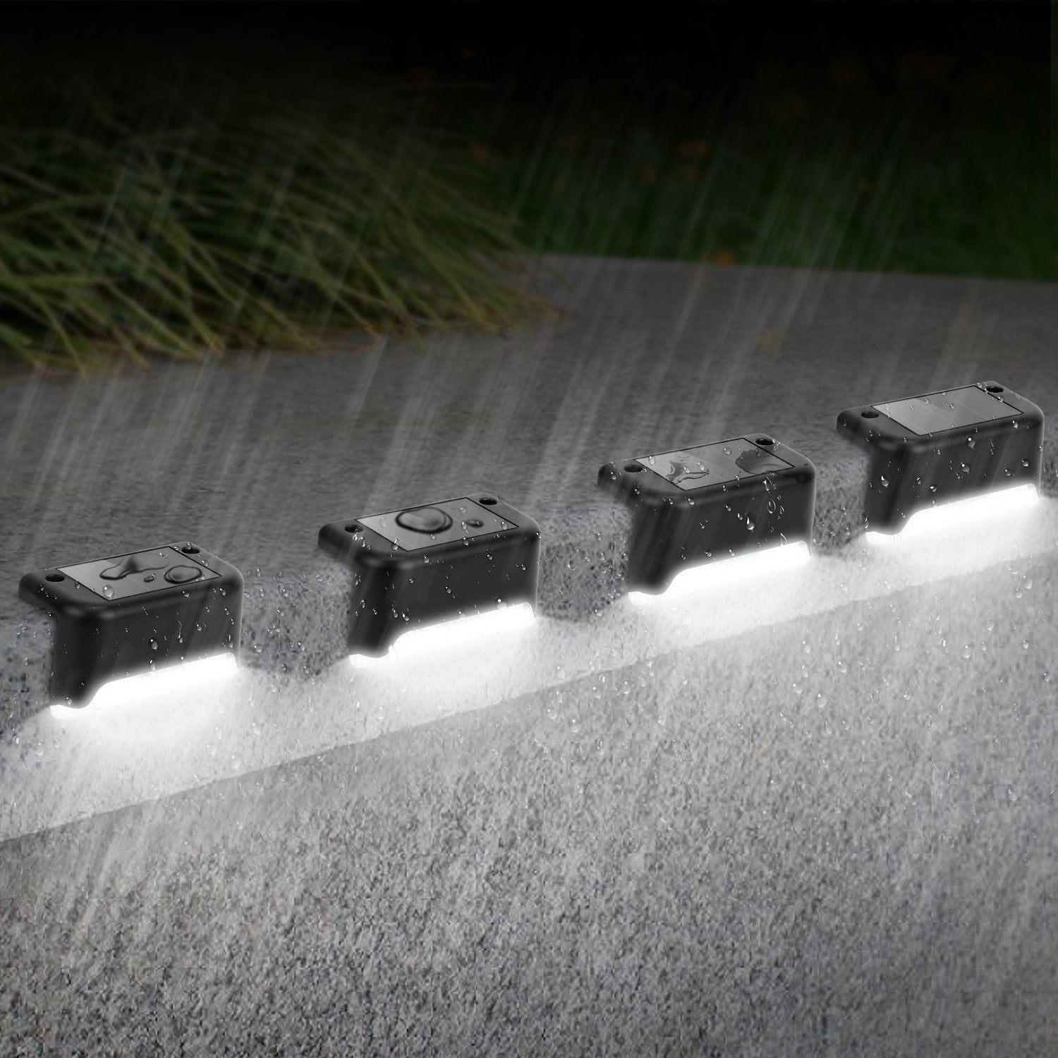 4Pcs Solar Powered LED Step Lights Outdoor Water-Resistant Fence Lamps