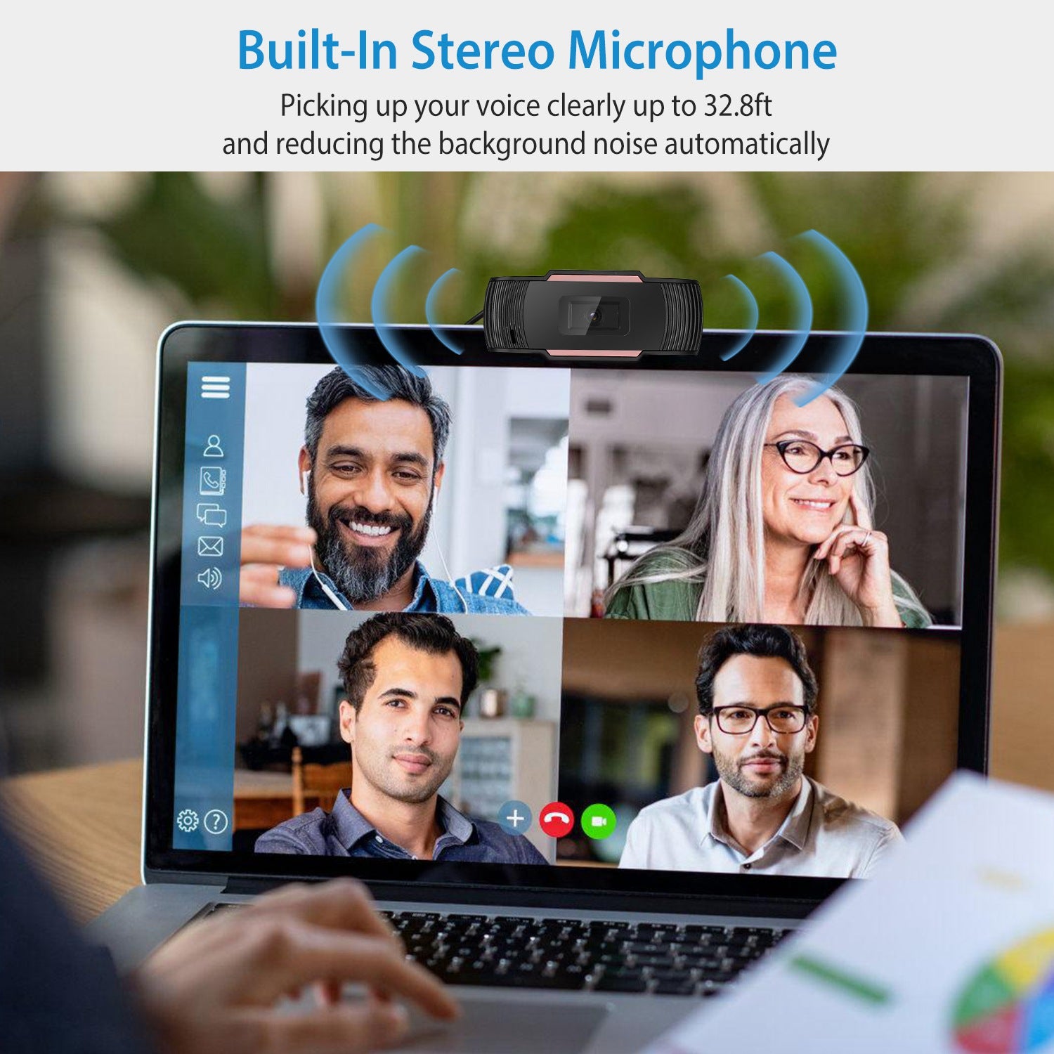 - *Webcam With Microphone*:Great for webinars, video conferencing, live streaming, etc.. The built-in Noise-canceling microphone reduces ambient noise to enhance the sound quality of your video. Even in noisy surroundings you can capture the sounds you want.