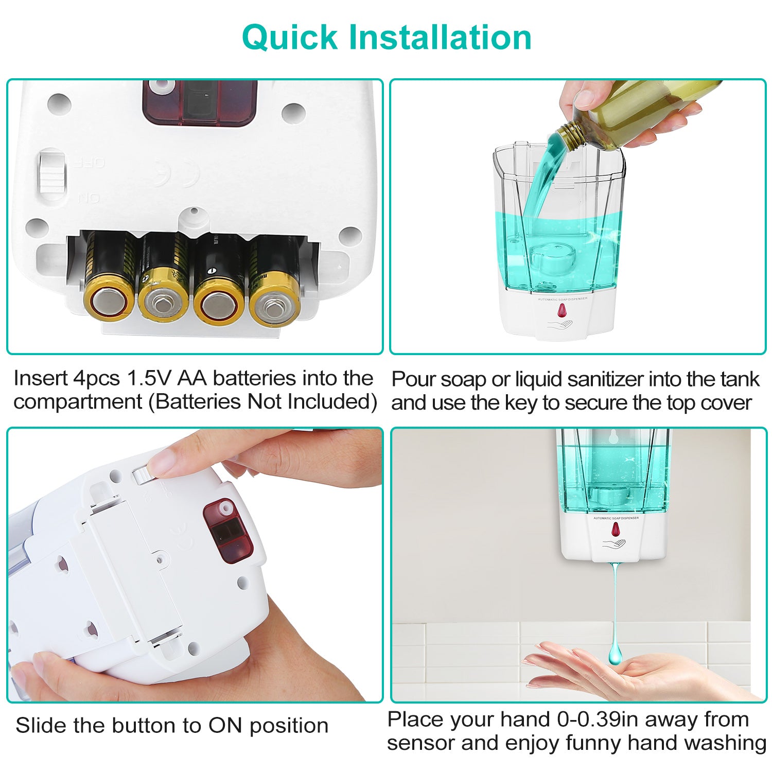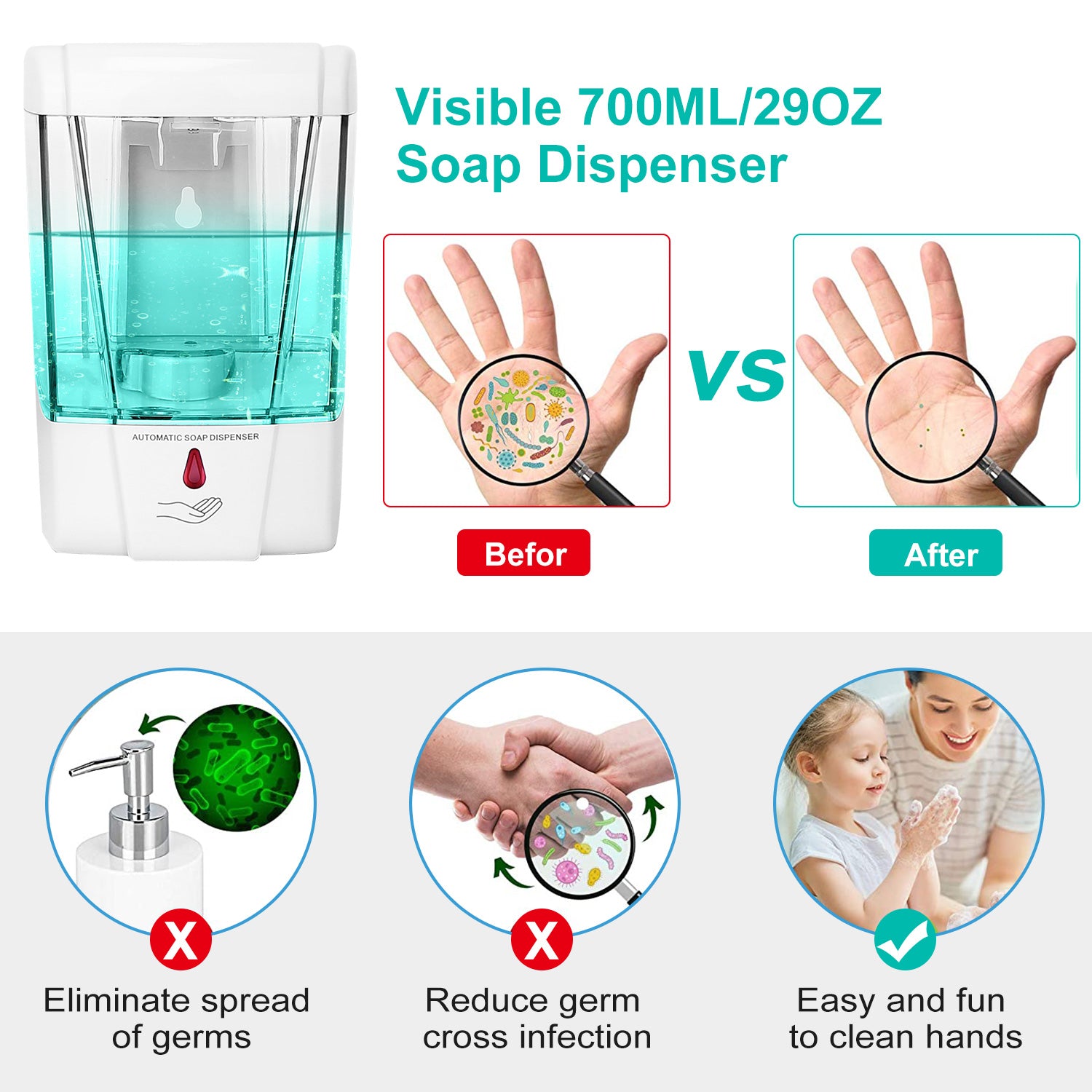 Automatic Soap Dispenser 700ML/29OZ Wall Mounted Sensor Refillable Hand Gel Dispenser
