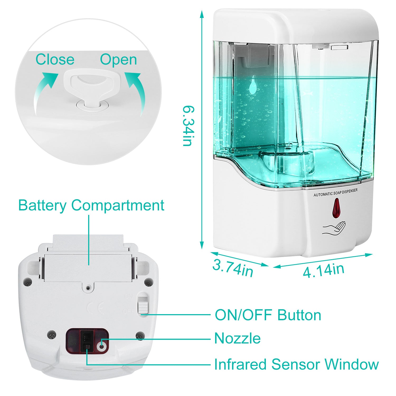 - **AUTO HANDS-FREE CLEANING*:Automatic hand sanitizer dispenser with sensor, put your hand under the sensor 0-3.94in, and let the dispenser to start working for continuously until liquid soap come out from nozzle. Fast hand disinfection and prevent cross infection.