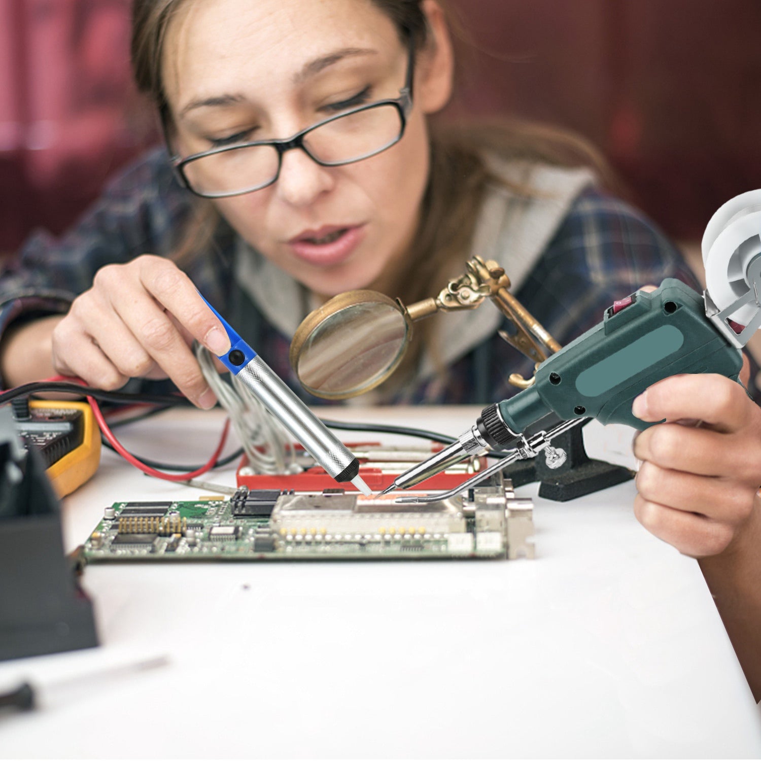 - *HAND HOLD DESIGN*:When use this soldering gun, you only need hold it by one hand and the other hand to operate the soldering sucker/desoldering pump.