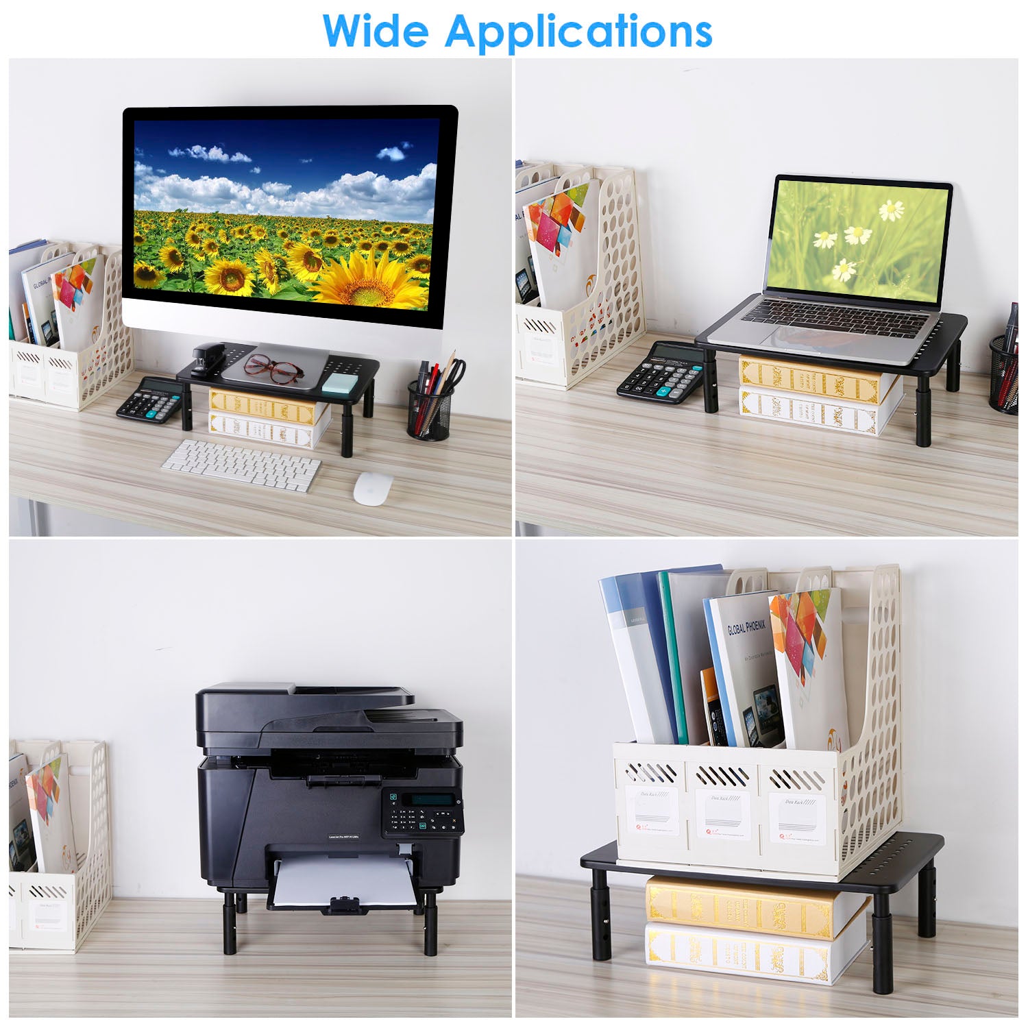- **160Pcs Ventilation Holes*:Perforated 160Pcs mesh hole platform, the adjustable monitor riser will help to prevent dreaded overheating and keep your computer cool.