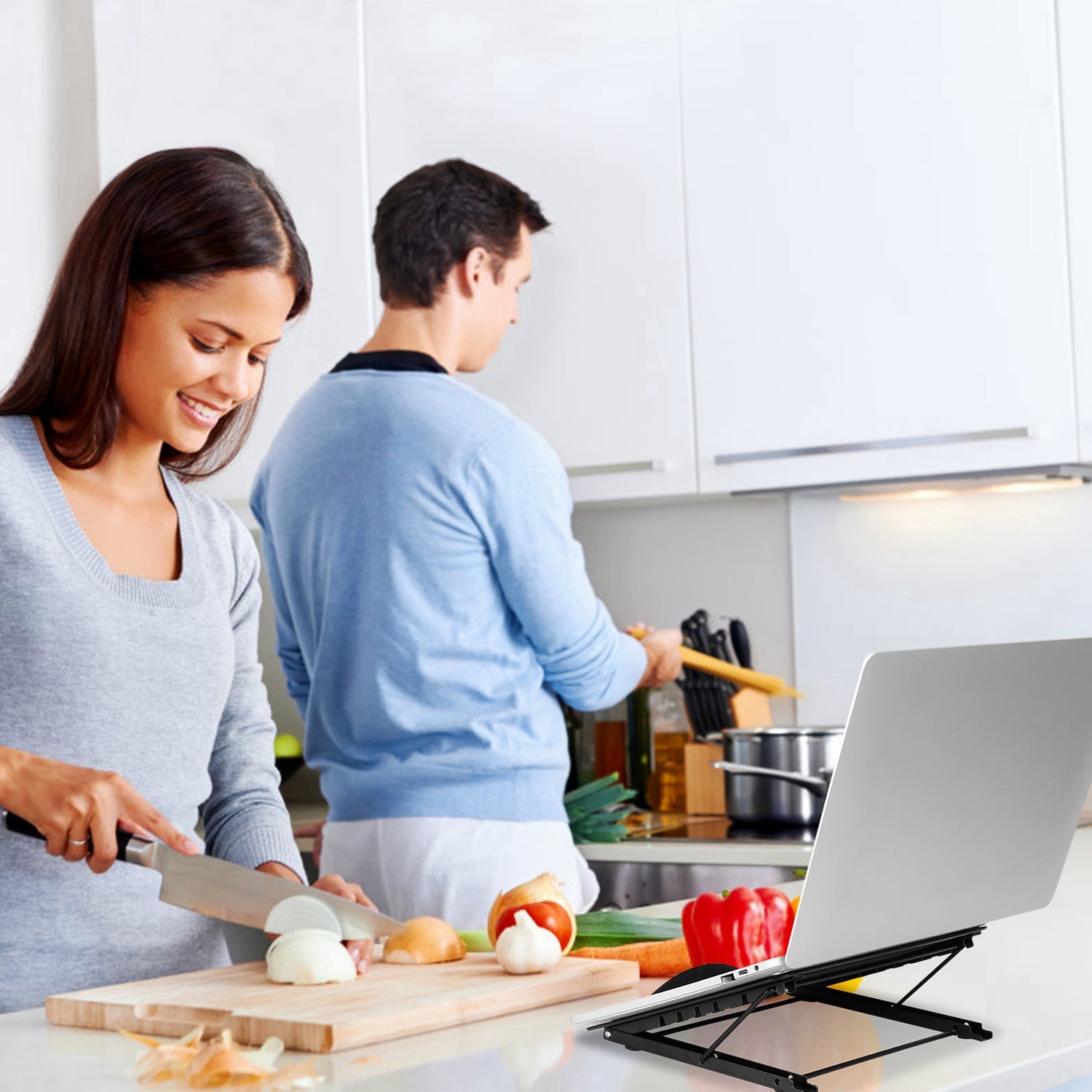 *6 ADJUSTABLE ANGLES*:6 adjustable angles help to relax your neck, shoulders and back. Anti-skid device is installed to avoid skidding in the course of using, rest assured your laptop is in safe hands.