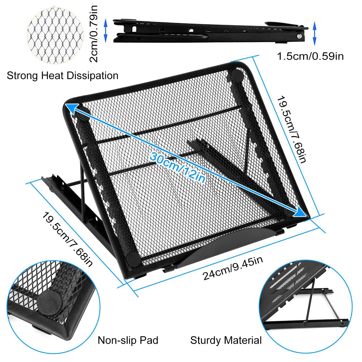 *COOL LAPTOP BETTER:Mesh panel helps keep laptops running cooler. Hollow design and adjustable angles increase airflow. Make sure to create comfortable life rhythm of the notebook,perfect for heat dispersion when enjoying video or playing games.
