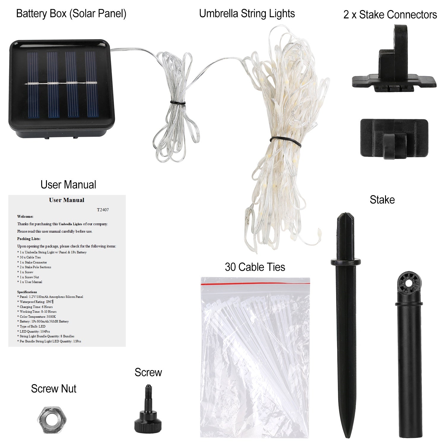 - 1 x Solar Umbrella String Light w/ 1Pc battery