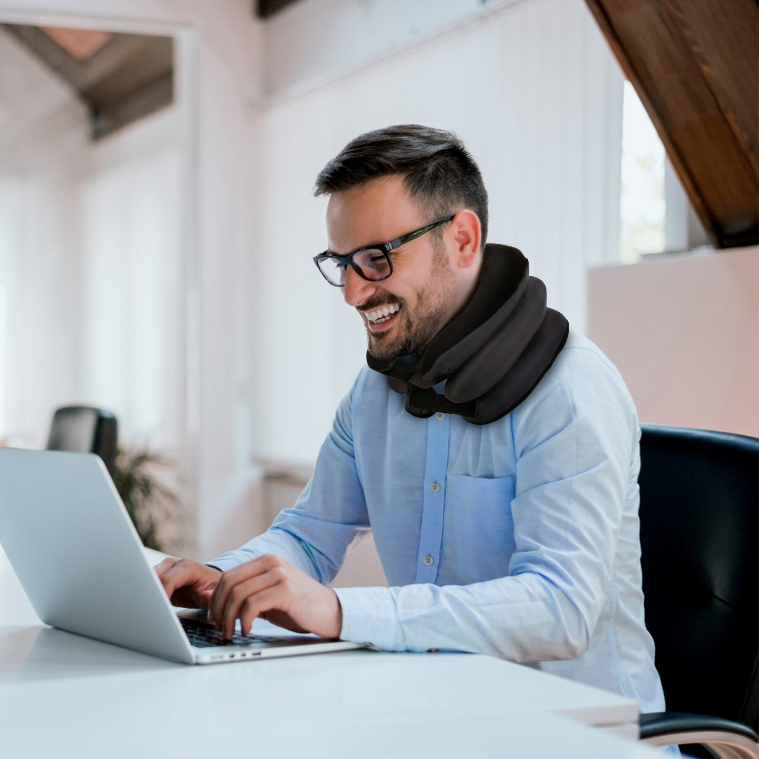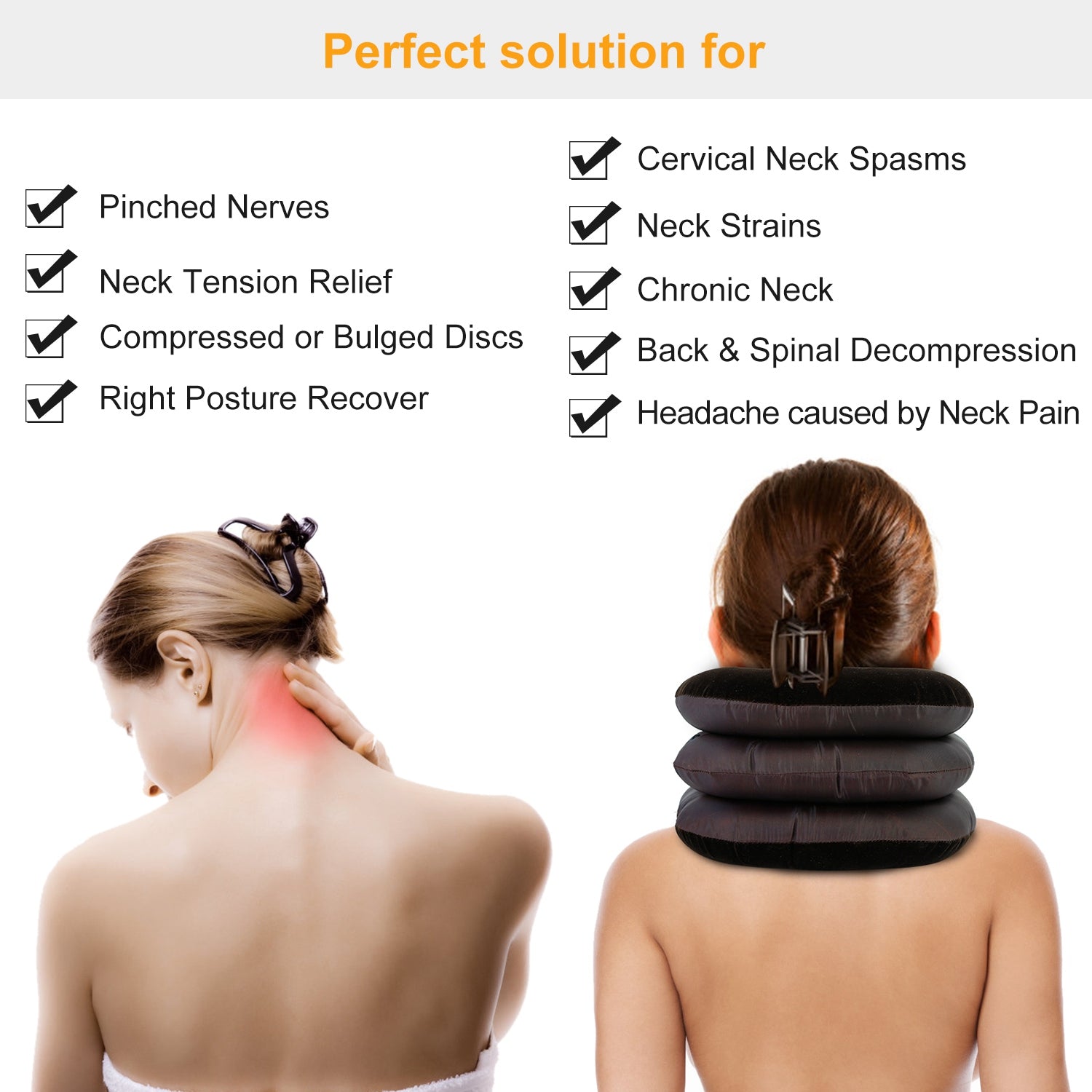 - *EASY TO USE AND CARRY*:Inflatable and lightweight compact design,which fits in your suitcase or backpack. You can easily enjoy the comfort of the neck traction anywhere and anytime.