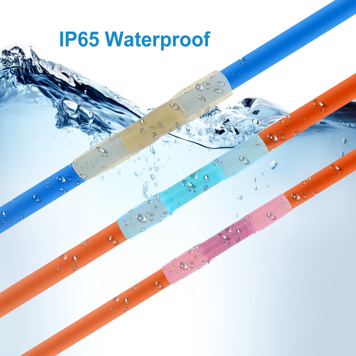 - *IP65 Waterproof*:This wire connector kit is IP65 waterproof, great for applications such as marine, boats, trailers, cars and other demanding electrical applications. Install wire connectors heat shrink and then apply a heat source,then it will create a water & moisture proof connection.