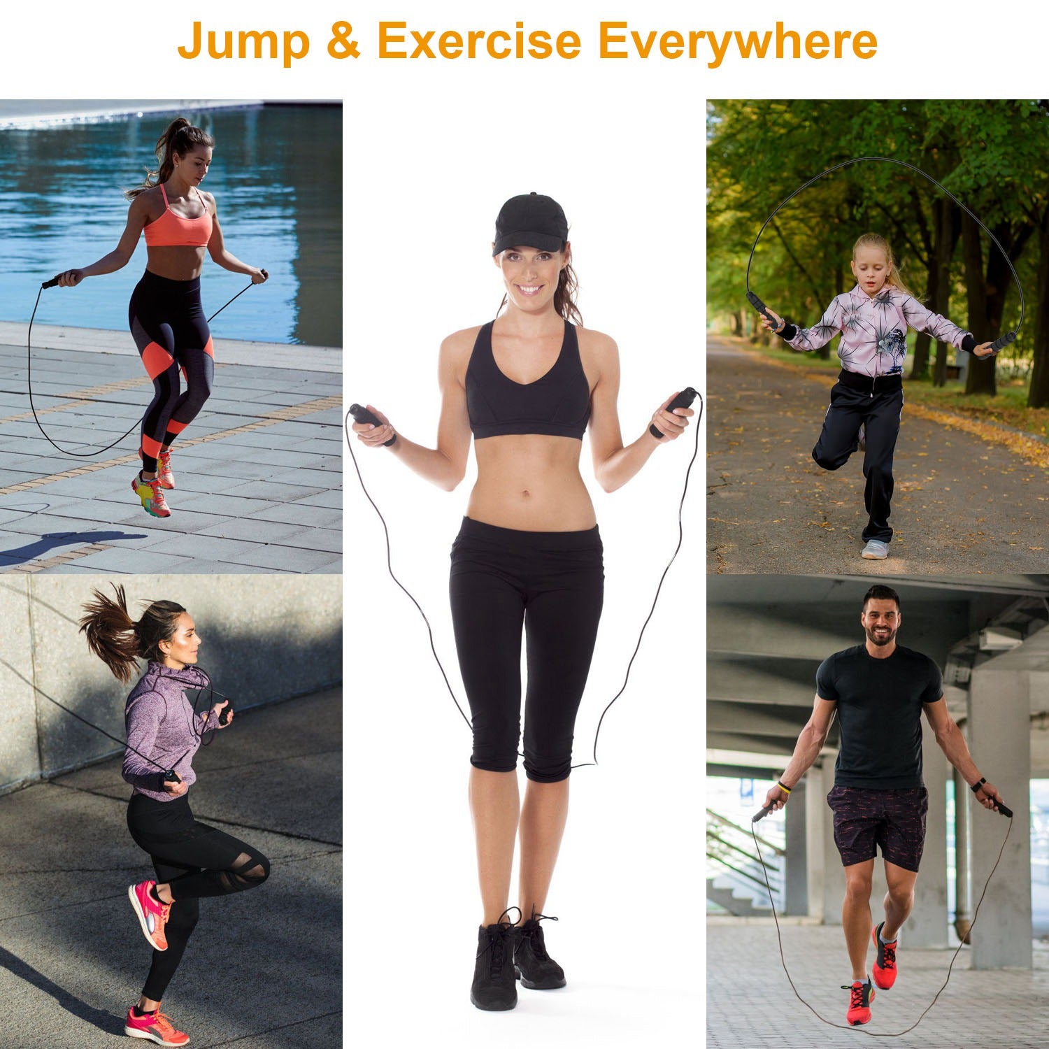 - *Sports Fitness*:Our Skipping Rope can shape your cardio endurance, stamina and speed, while improving the muscle tension of various parts of the whole body. Come with two iron blocks(Total:.36lbs), you can also add or remove them to exercise according to your need and jump for 10 minutes every day to keep fit.