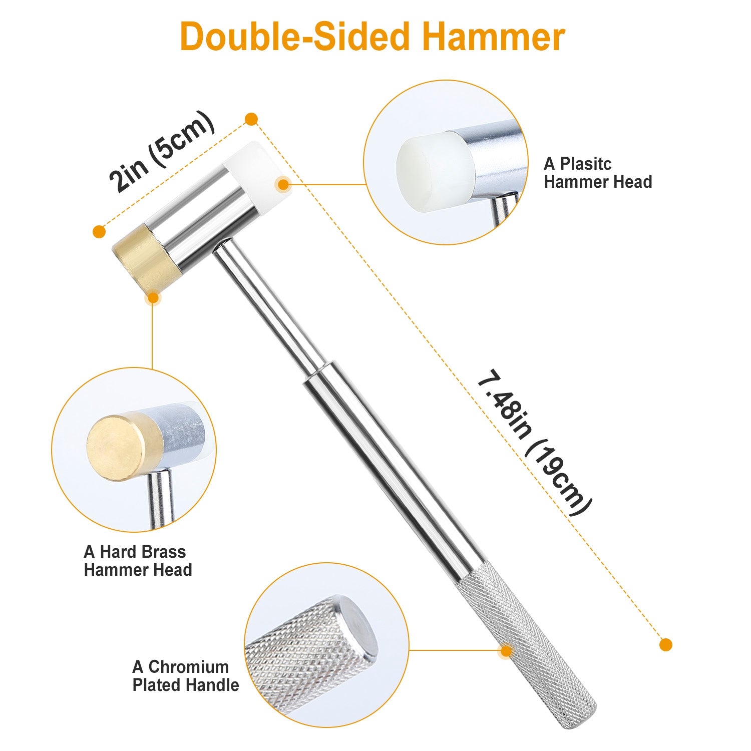 - Double-Sided Hammer: With a chrome plated steel handle, a nylon, brass combination hammer can ensure strong, but non-marring contact while in use, not easy to wear, strong rust- resistance.